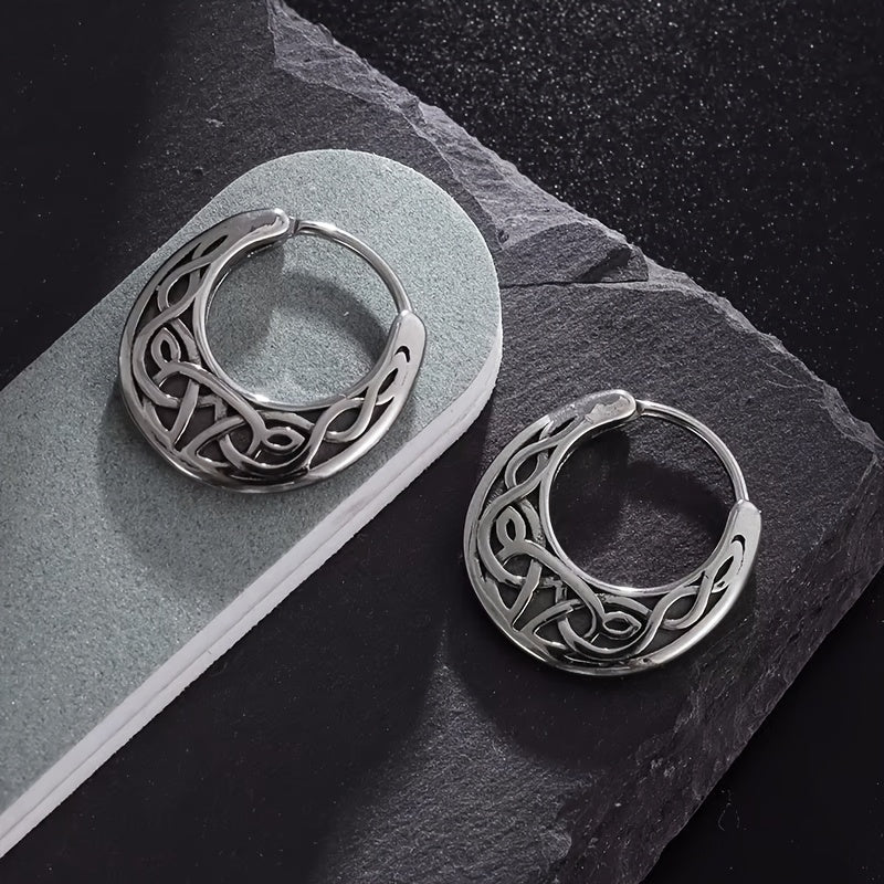 Embrace a stylish ethnic punk rock look with these male earrings featuring a Celtic knot design. Crafted for comfort with hypoallergenic materials.
