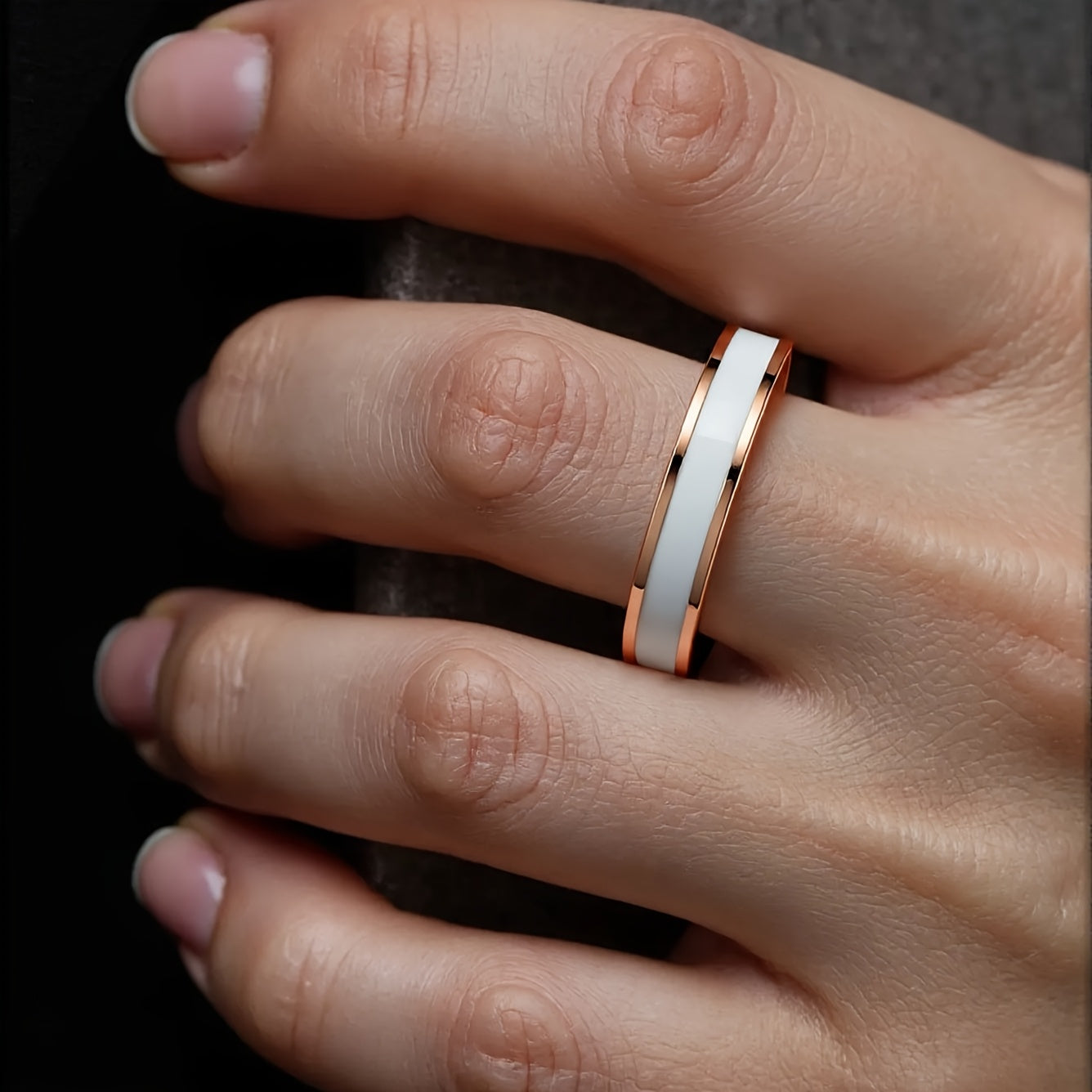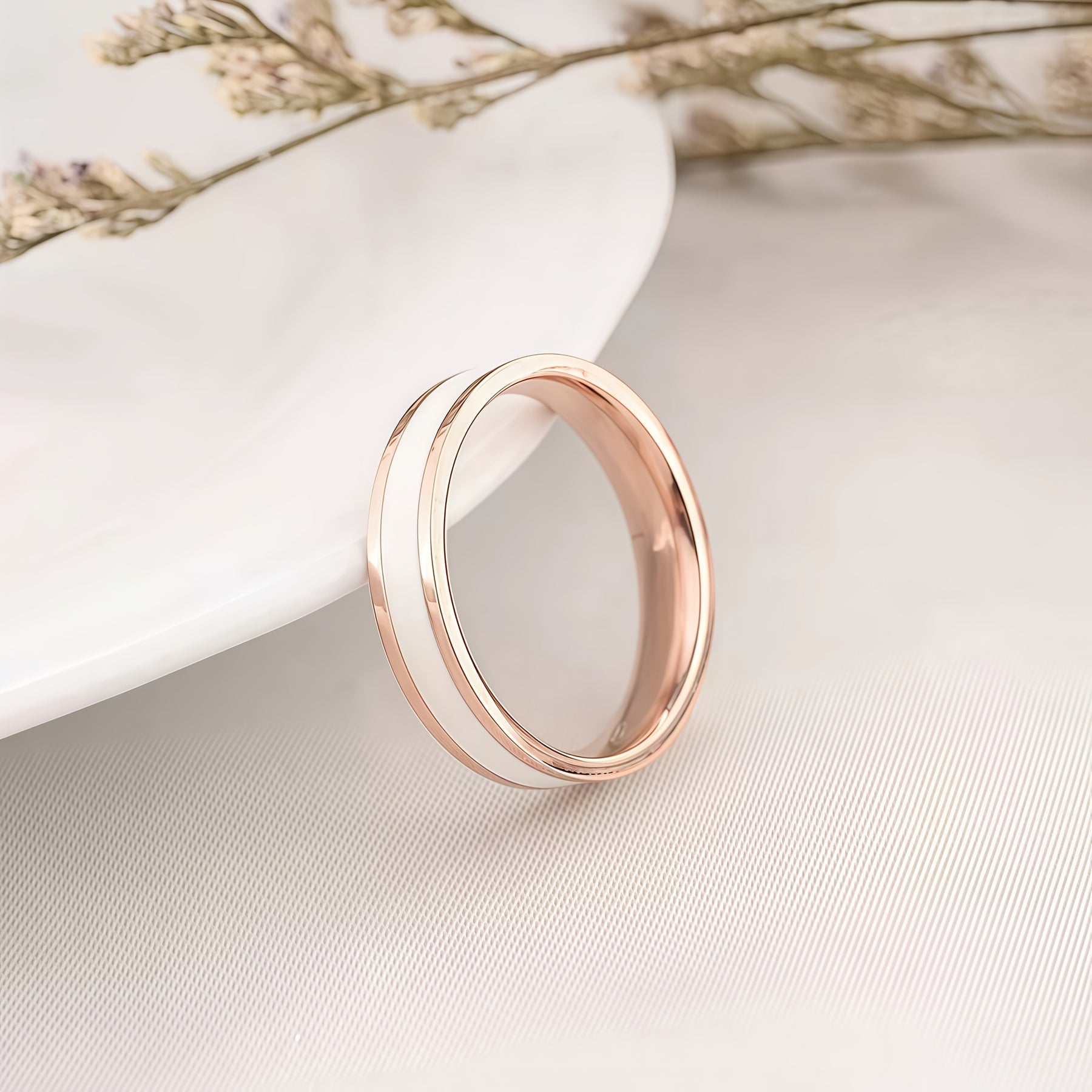 This men's ring features a modern minimalist design with rose golden and two-tone accents. It is made of durable rose golden plated material, perfect for casual wear or parties. Great gift idea for men.
