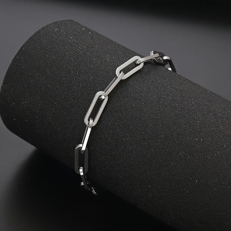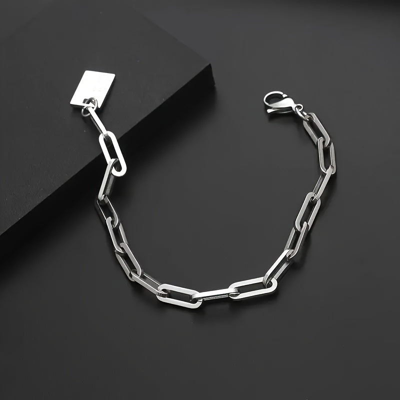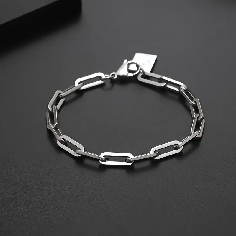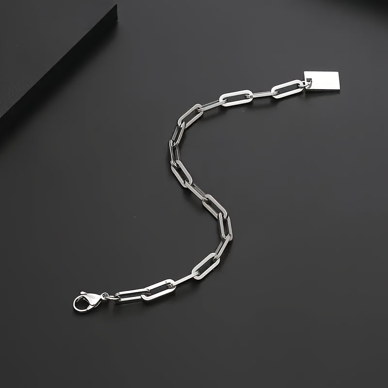 This stainless steel bracelet is a stylish and durable accessory for men. It features an adjustable design with an engravable gift tag, making it a versatile piece suitable for daily wear, parties, graduation, or teacher appreciation.