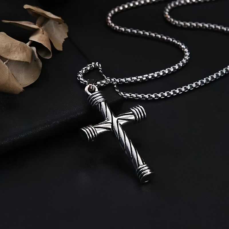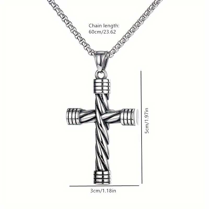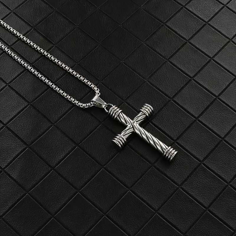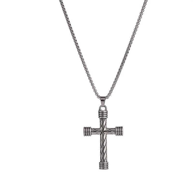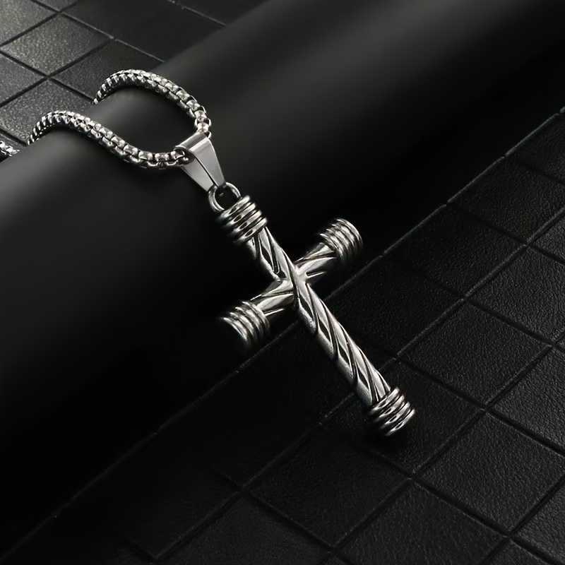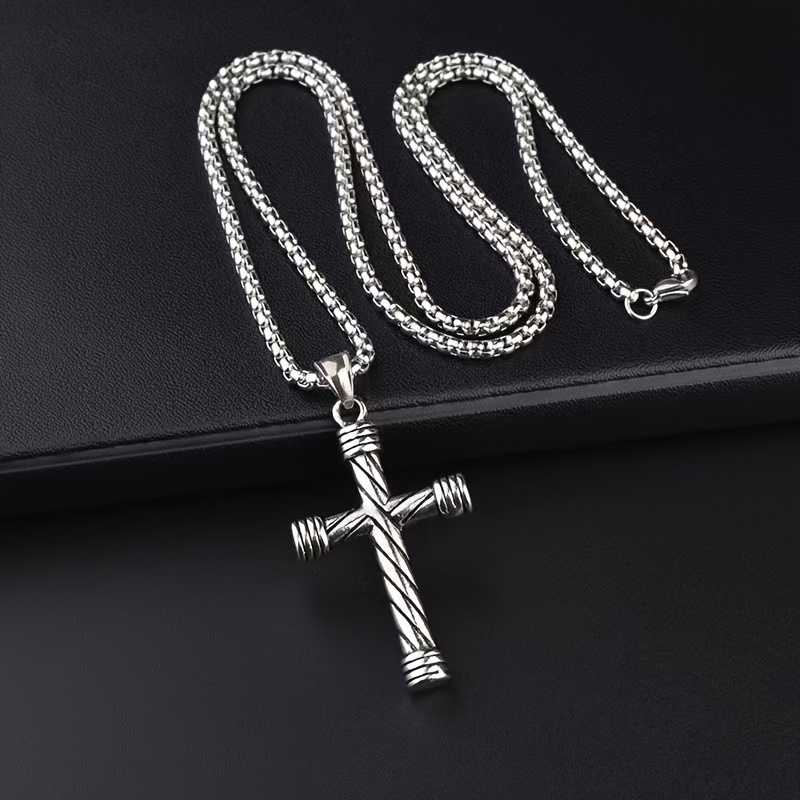 Men's Stainless Steel Cross Pendant Necklace With Round Box Chain