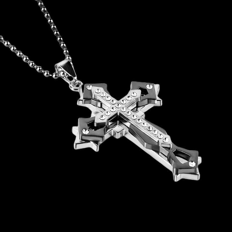 Men's Stainless steel Three Layered Cross Pendant Necklace With Zircon Stones