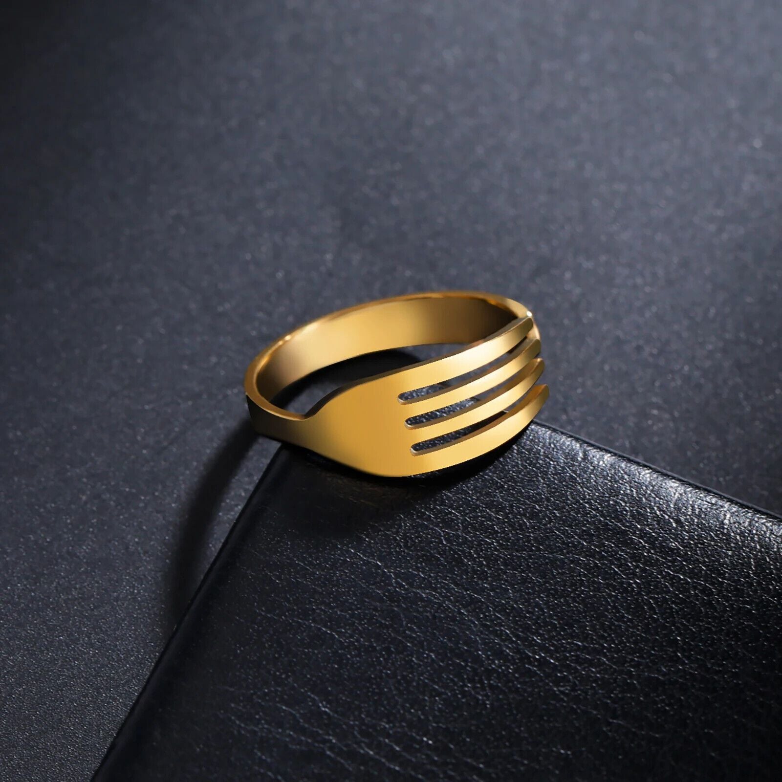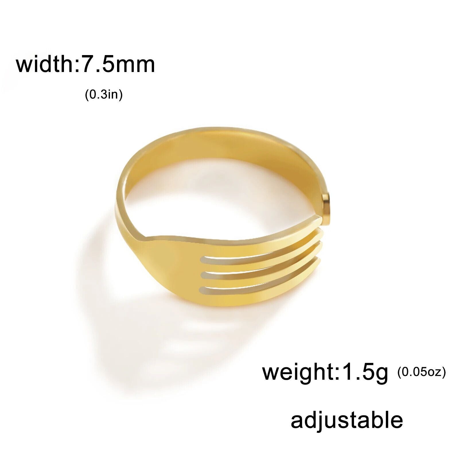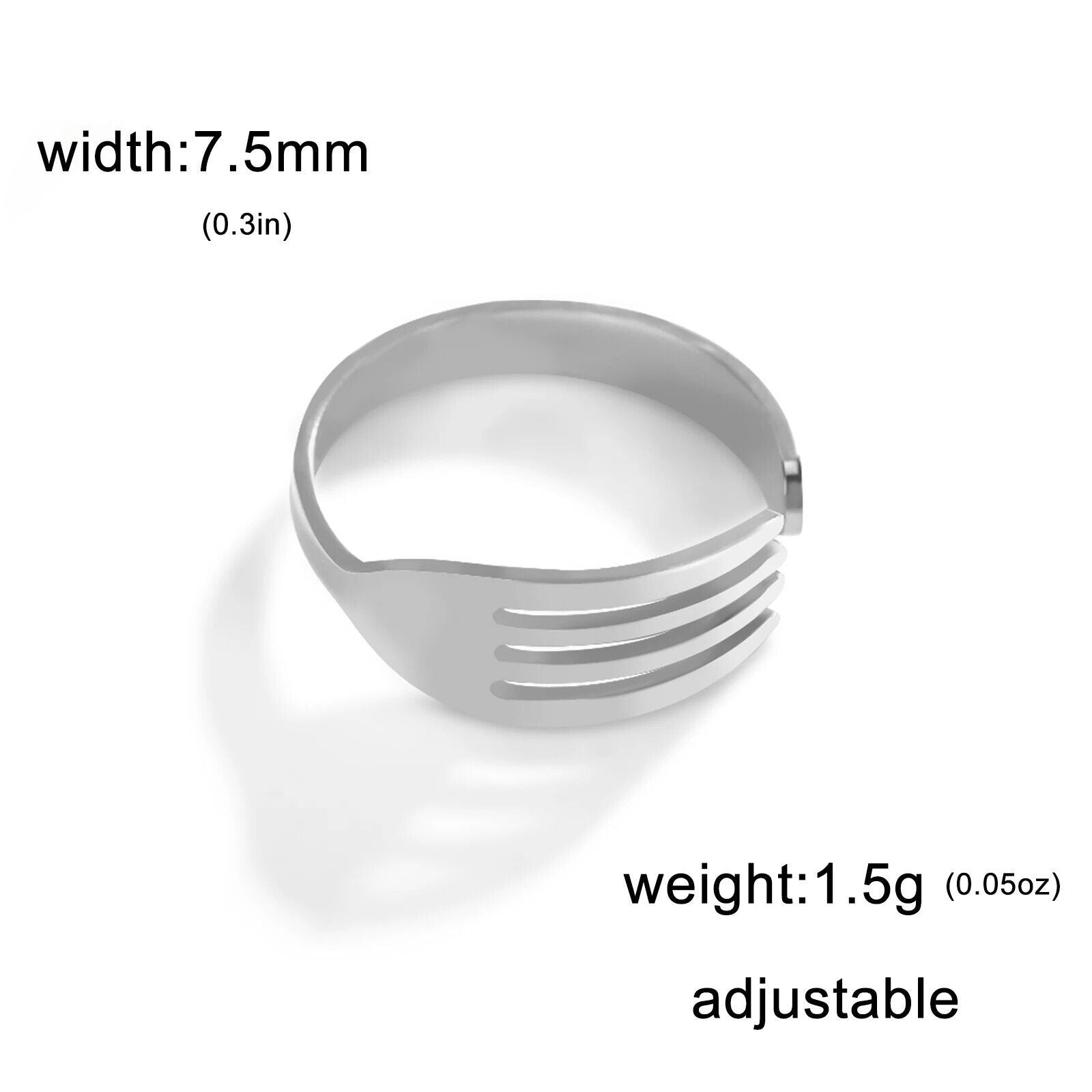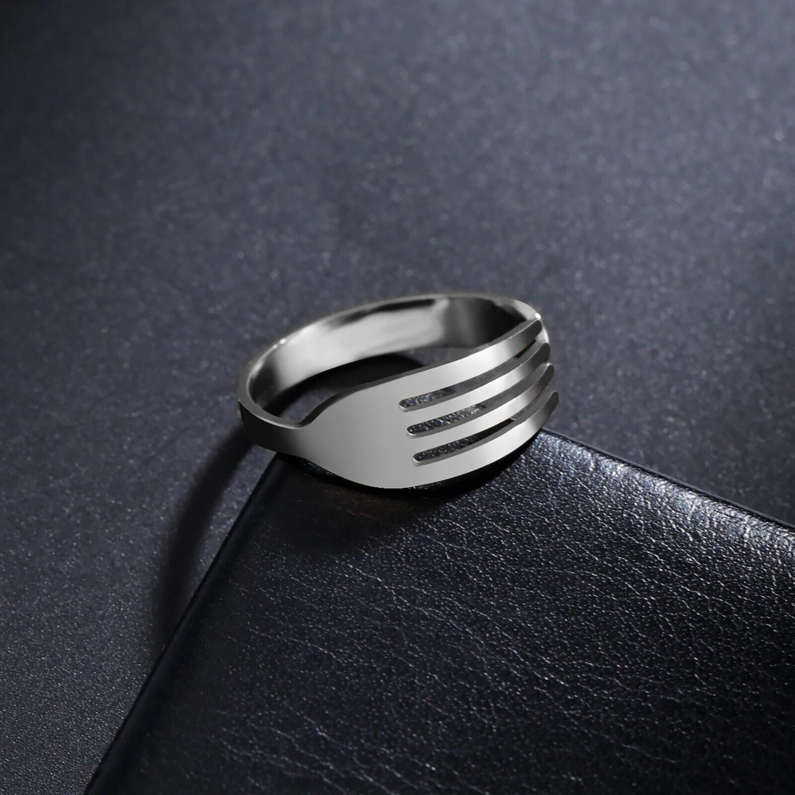 This vintage fork ring is made of stainless steel, perfect for daily wear. It is a stylish and unique accessory that adds a hip hop touch to your outfit. The adjustable design ensures a comfortable fit.