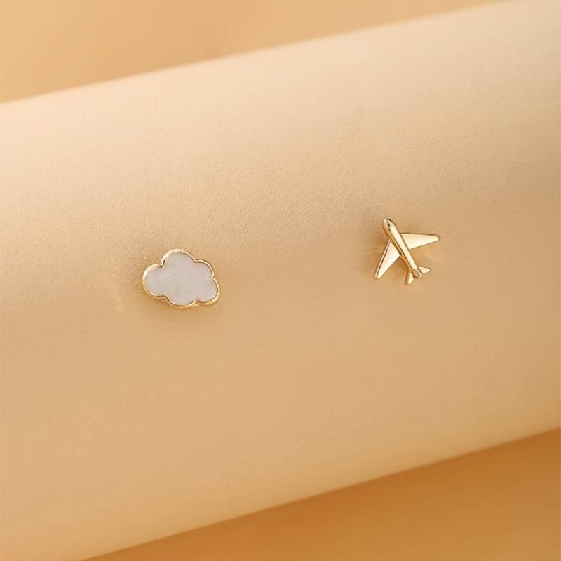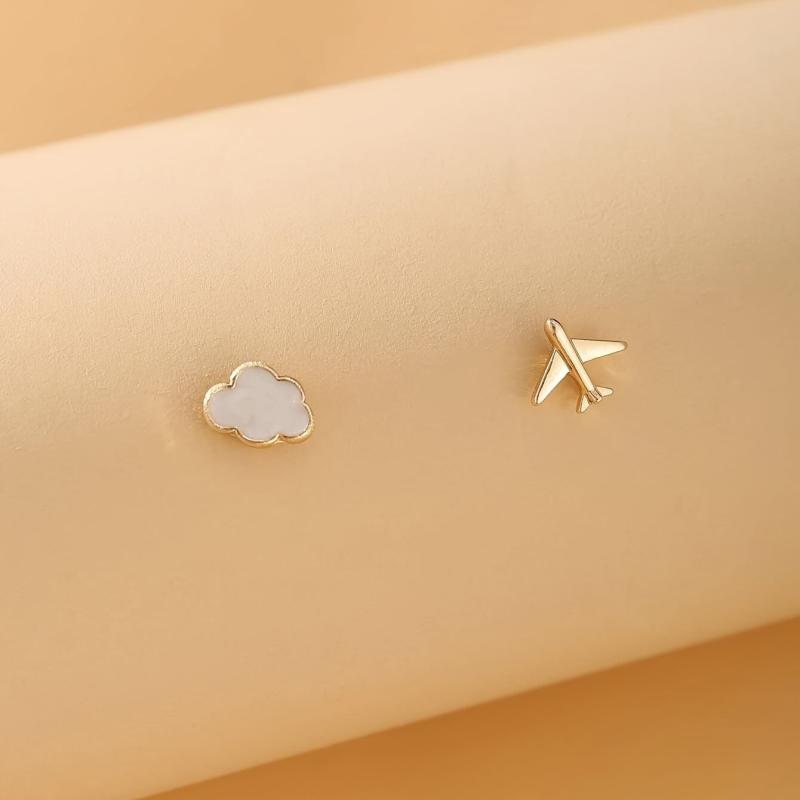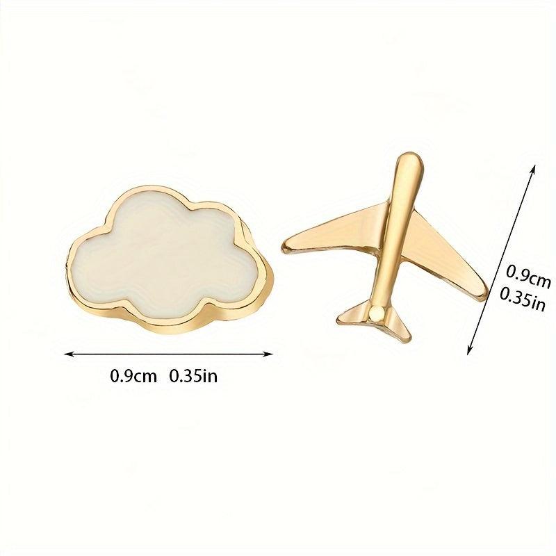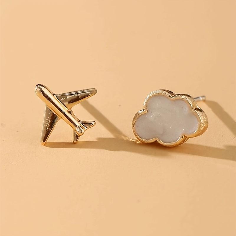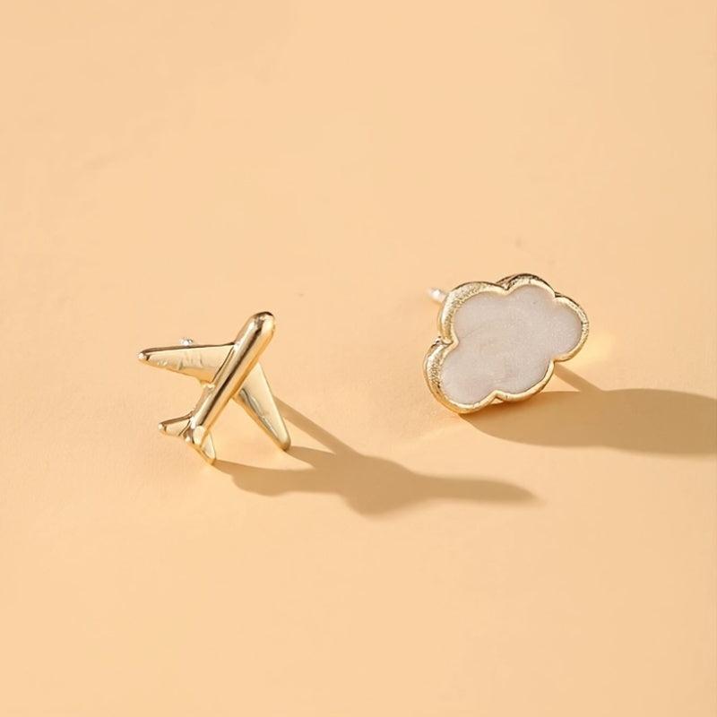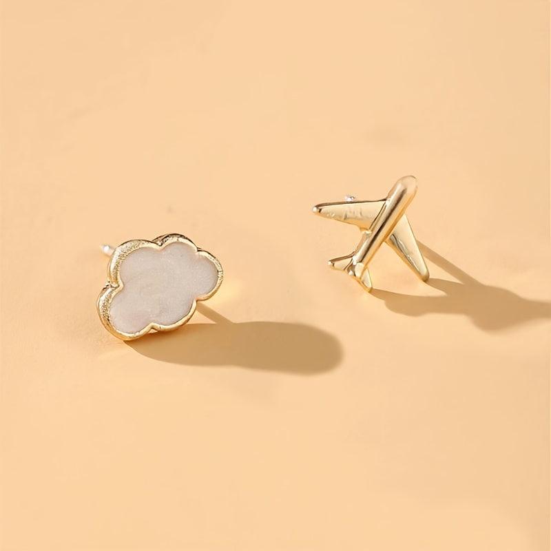 Add a touch of whimsy to your look with these daily earrings featuring airplane and cloud designs. Made of zinc alloy with golden plating, perfect for casual wear or music festivals.