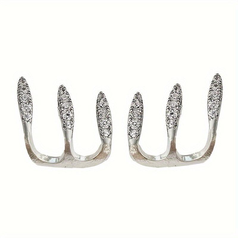 Add a touch of elegance to your look with these minimalist curved stud earrings featuring three claw design. Perfect for everyday wear or special occasions.