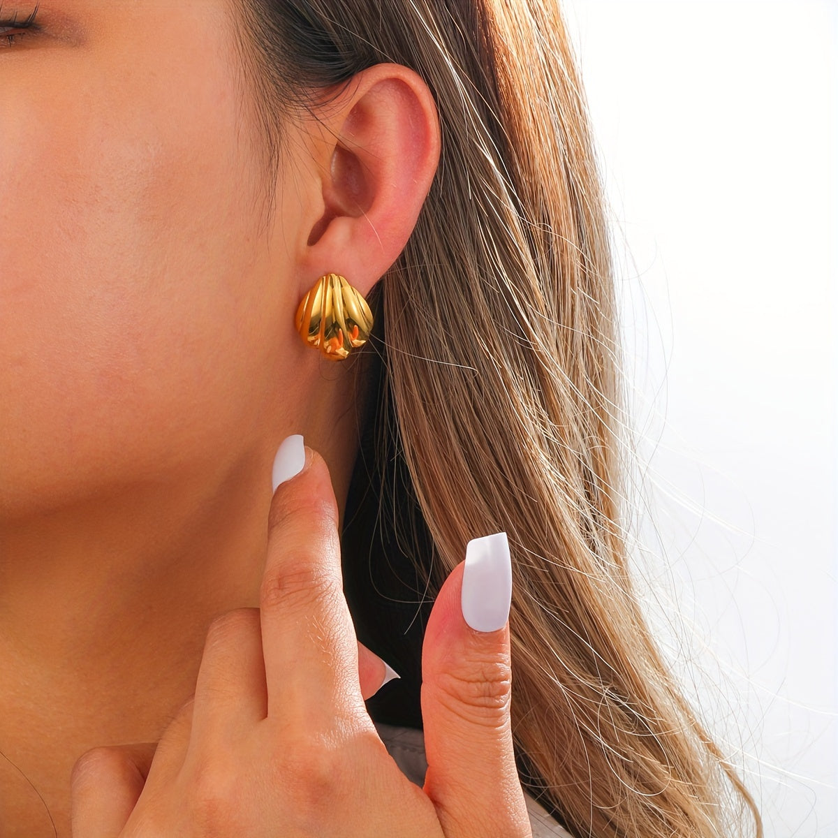 These shell shaped earrings are perfect for summer vacations and everyday wear. Made of stainless steel, they have a unique design that adds a touch of elegance to any outfit. They also make a great holiday gift.