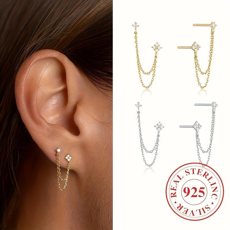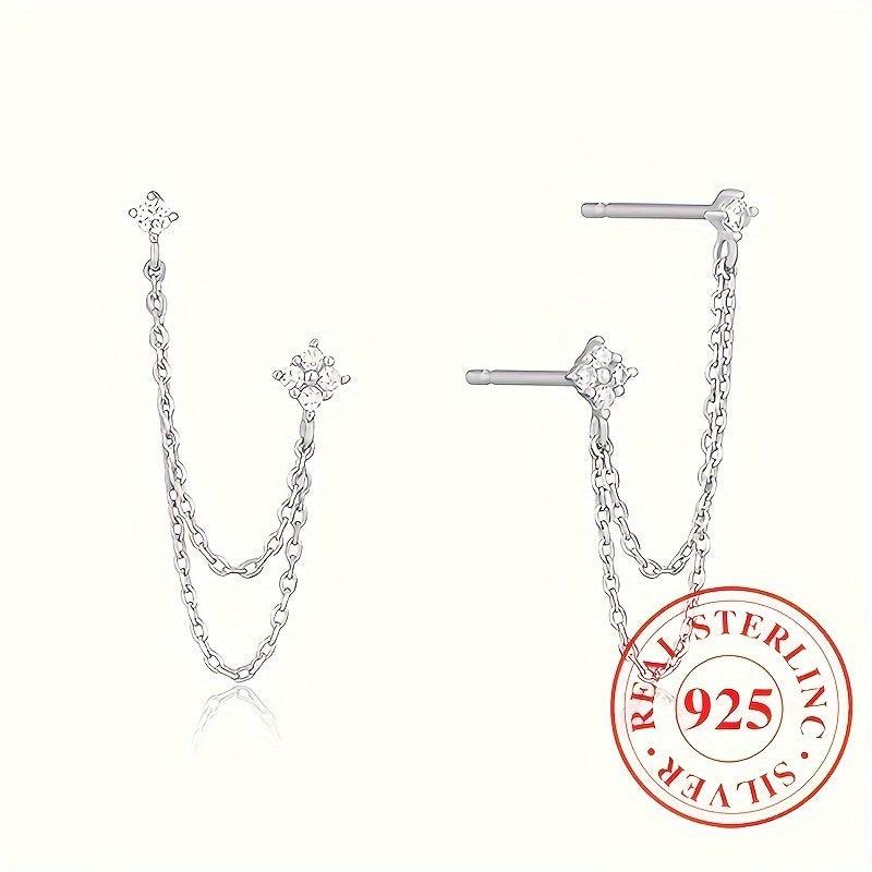 Elegant and minimalist daily wear jewelry set crafted from 1.5g of 925 sterling silver. The set includes a chain pendant and zirconia earrings, perfect for weddings or everyday use.