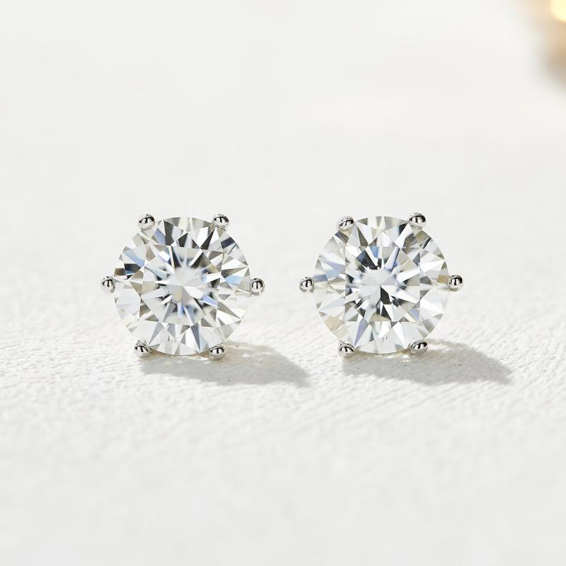 Moissanite Classic 6 Prong Stud Earrings 925 Silver Gift Box