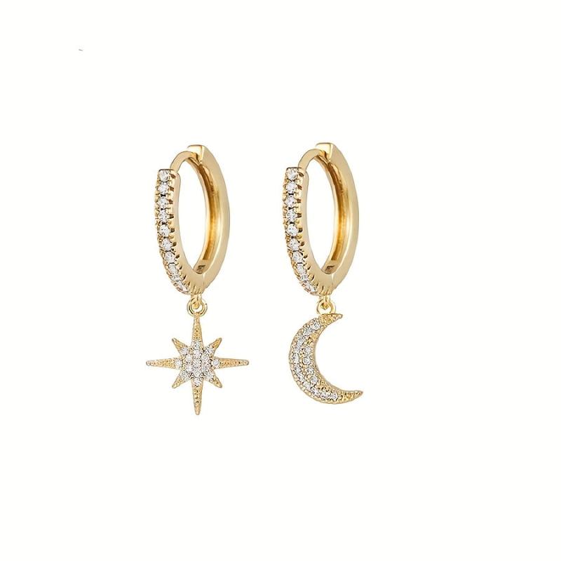These moon and eight blind stars earrings are perfect for everyday wear by women.