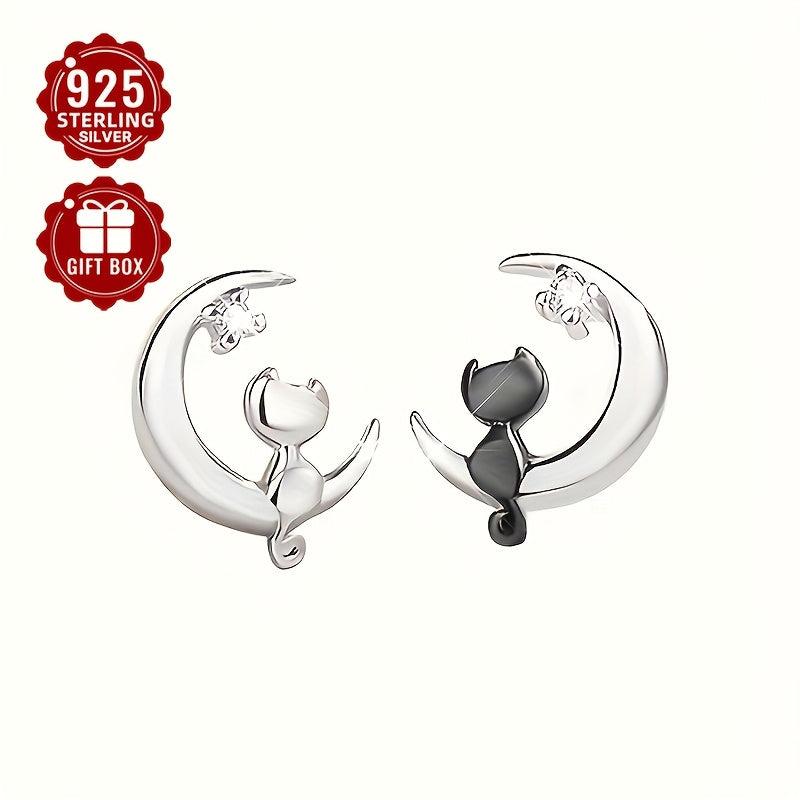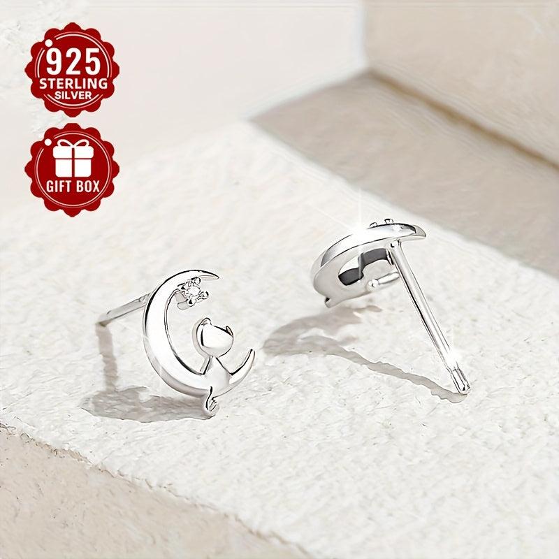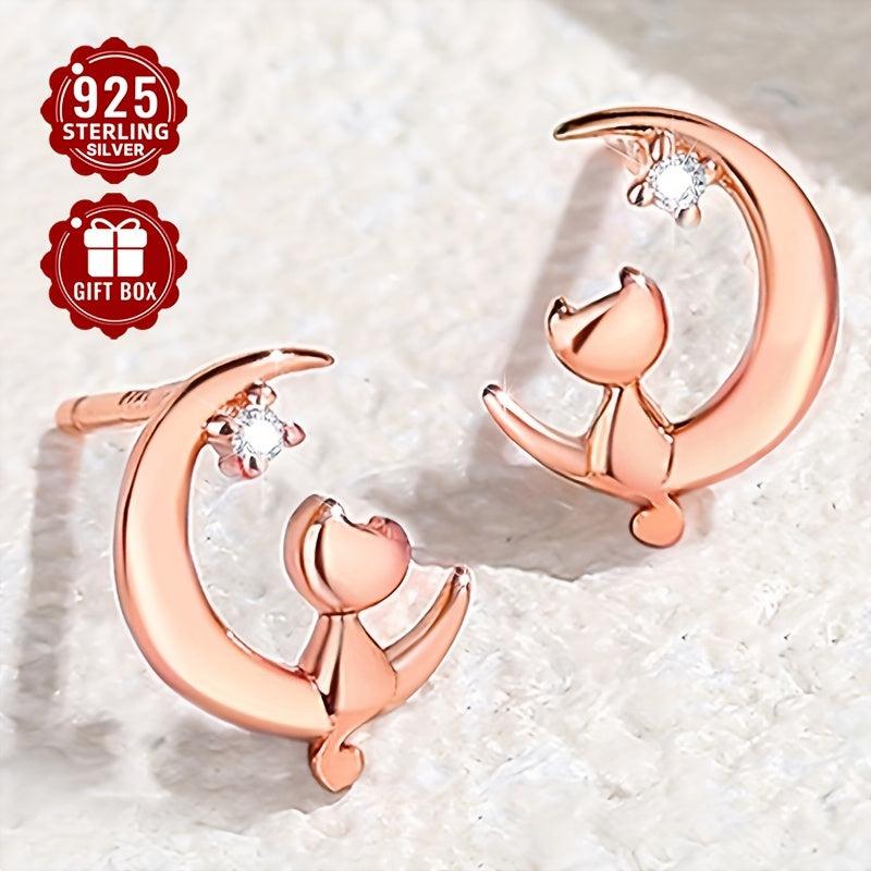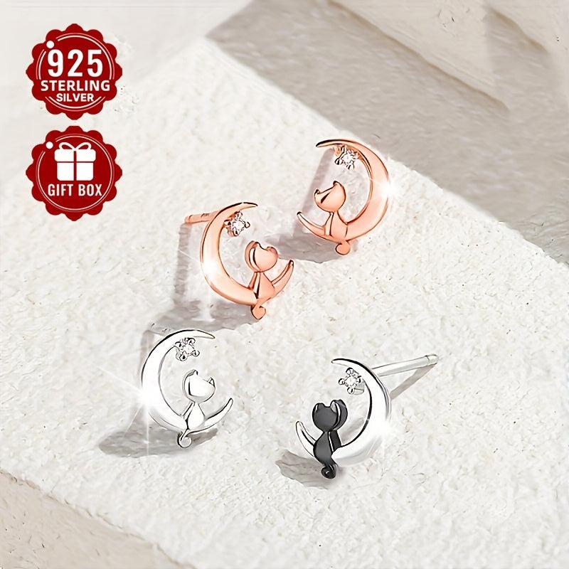 These sweet cat stud earrings are made of high-quality S925 sterling silver and feature a sparkling zirconia stone. Perfect for girls who love a touch of whimsy.