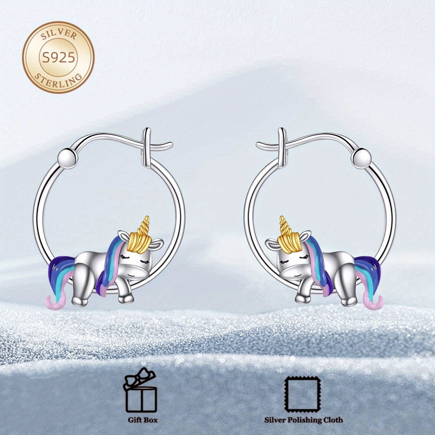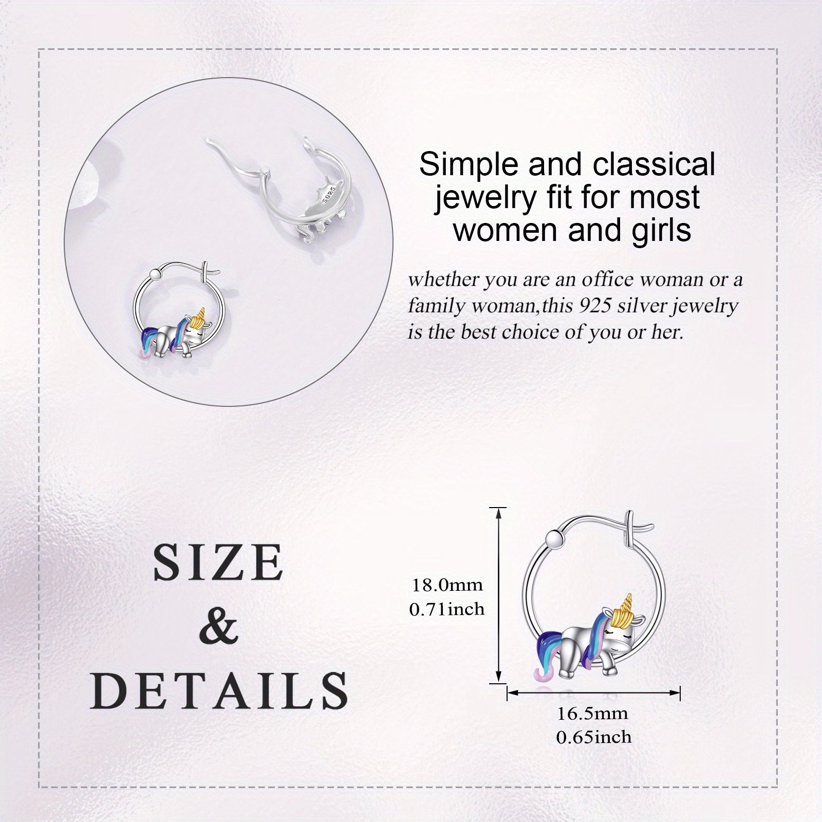These beautiful Moon Unicorn Hoop Earrings are made of 925 Sterling Silver. They weigh 3.5 grams and are perfect gifts for both women and men.
