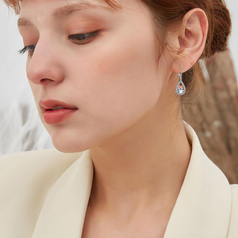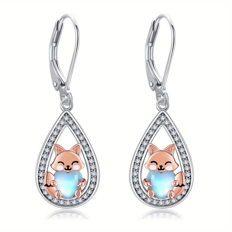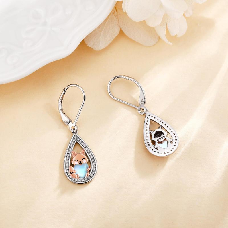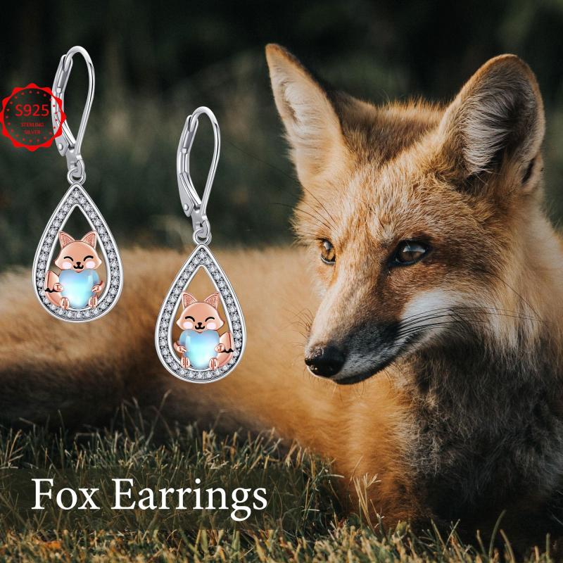 Moonstone Fox Drop Dangle Earrings 925 Sterling Silver Fox Jewellery