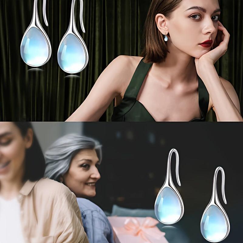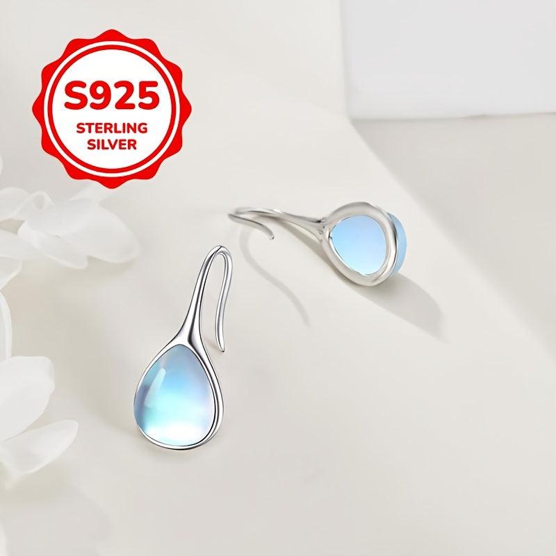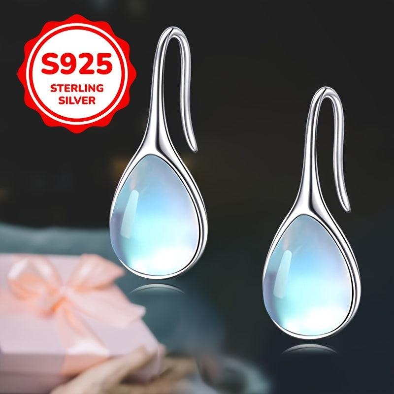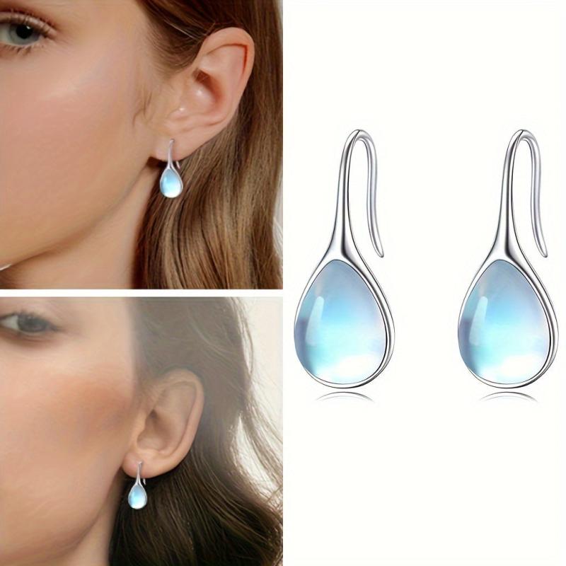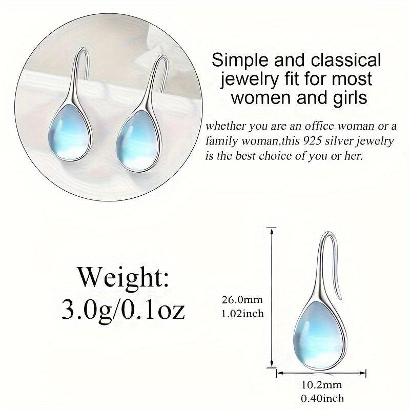 These teardrop moonstone earrings are made of S925 sterling silver, hypoallergenic, and perfect for daily wear. They feature a golden plated design and weigh 2.4g, making them a great gift option.