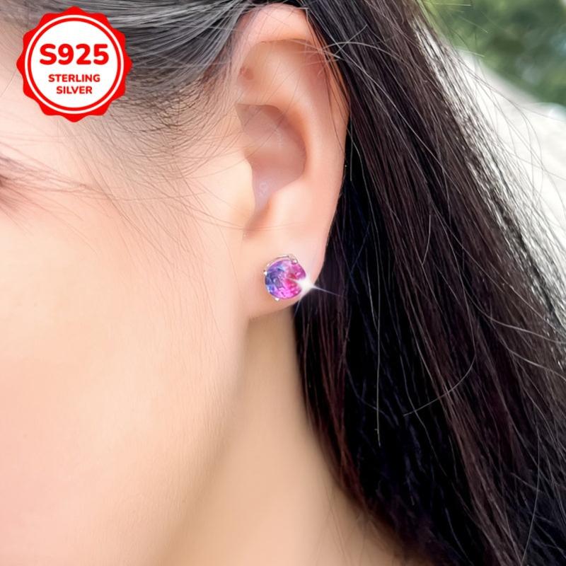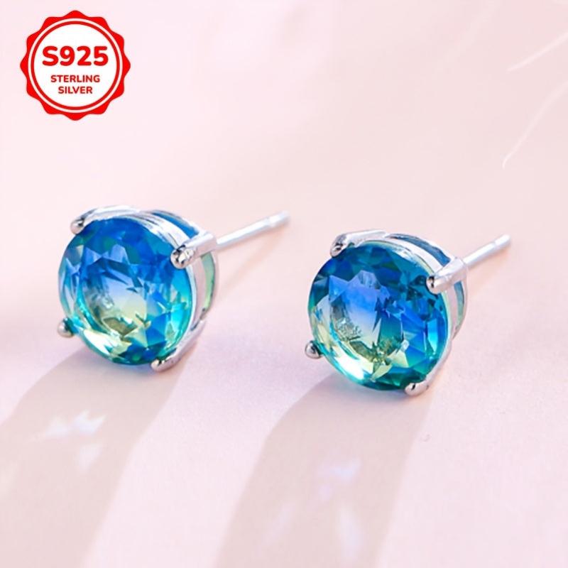 These mysterious multicolor women's earrings are made of 925 pure silvery metal. The earrings feature single round synthetic zirconia stones and have a low allergy design. Perfect for the bohemian style enthusiast and a great gift for Christmas.