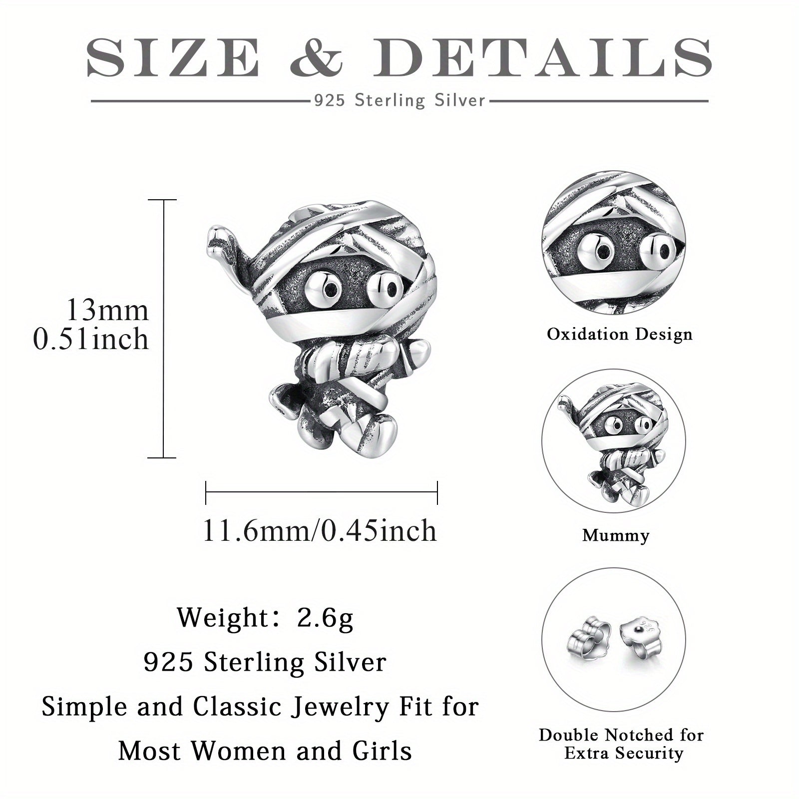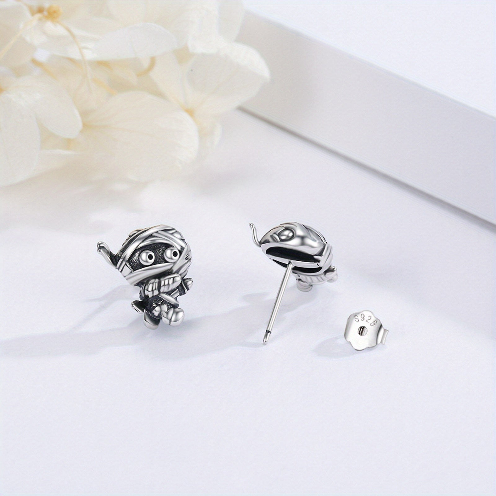 • 925 Sterling Silver Mummy Stud Earrings