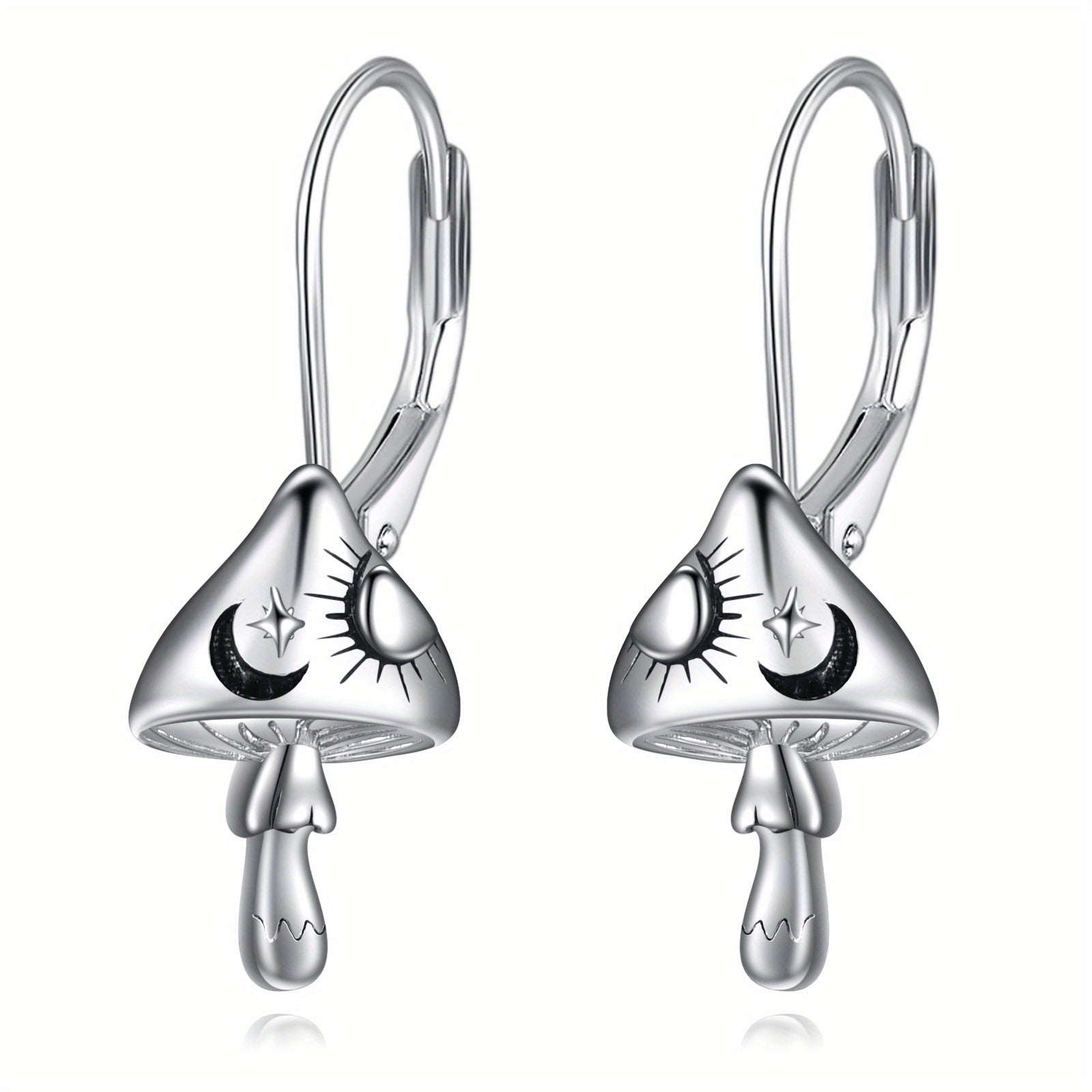 These adorable mushroom leverback earrings feature a fun sun and moon design in sterling silver. Perfect for women, daughters, or any nature lover who appreciates unique jewelry.