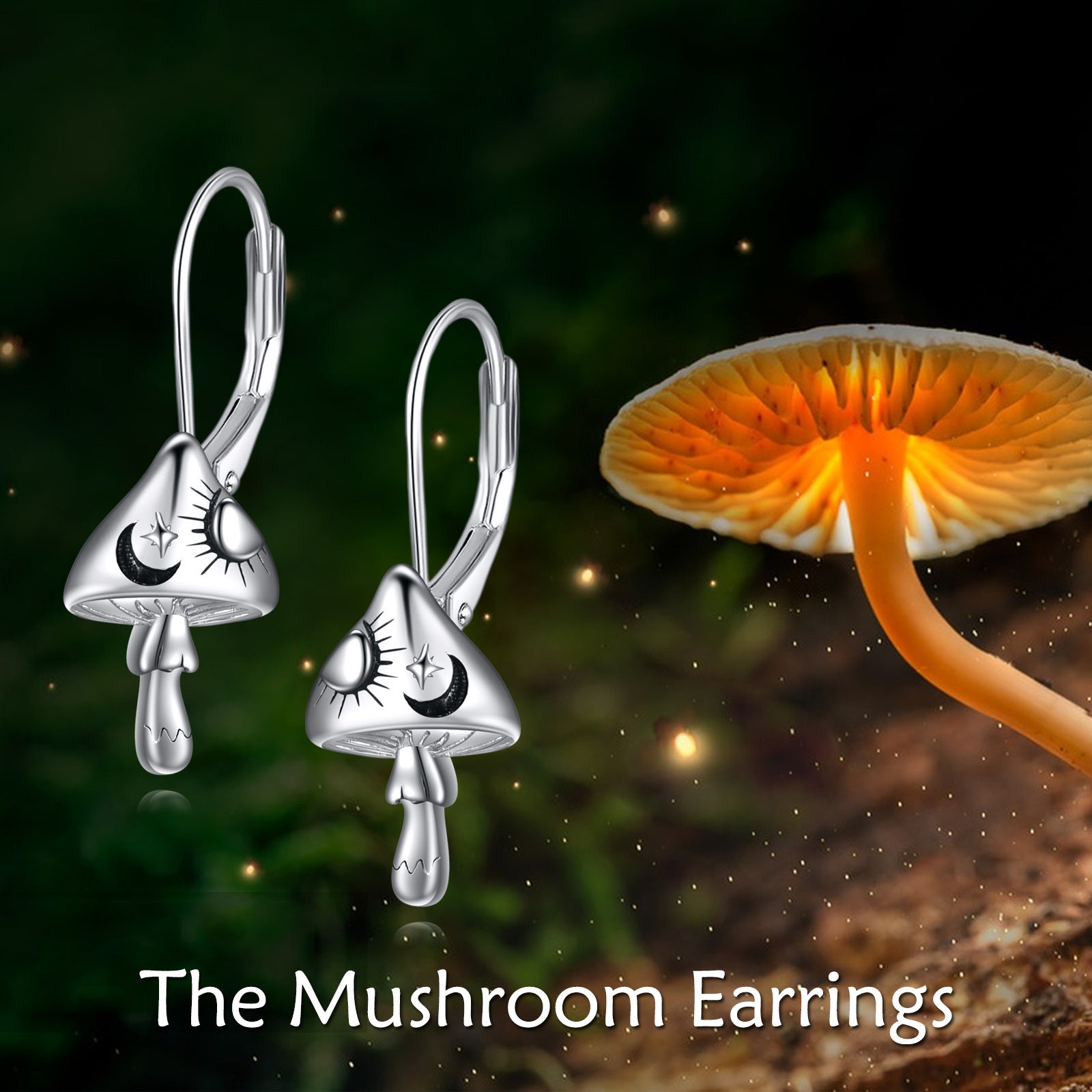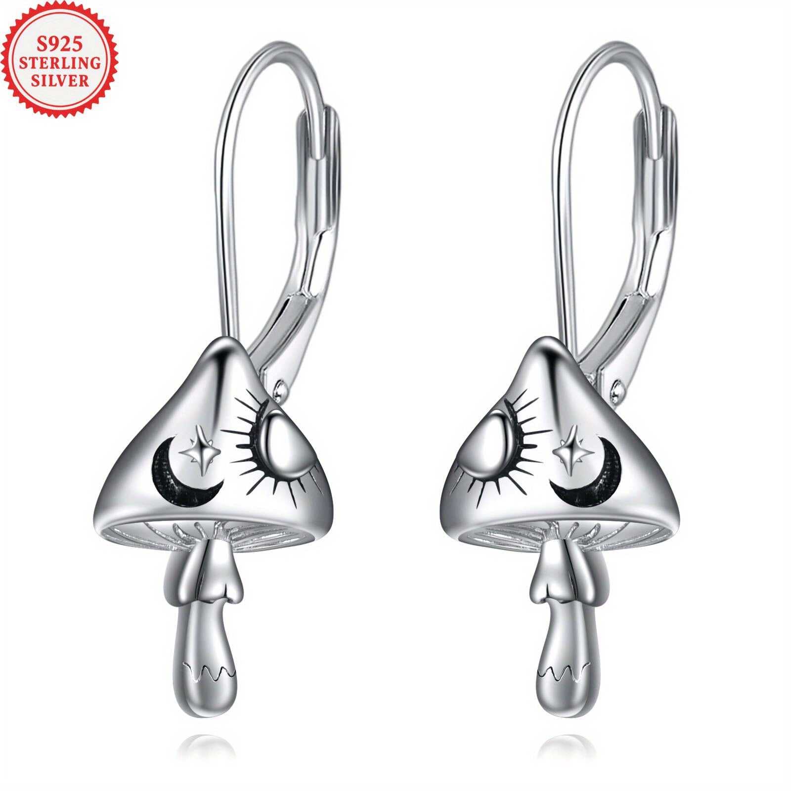 Mushroom Leverback Earrings Sterling Silver Sun Moon Jewelry for Women
