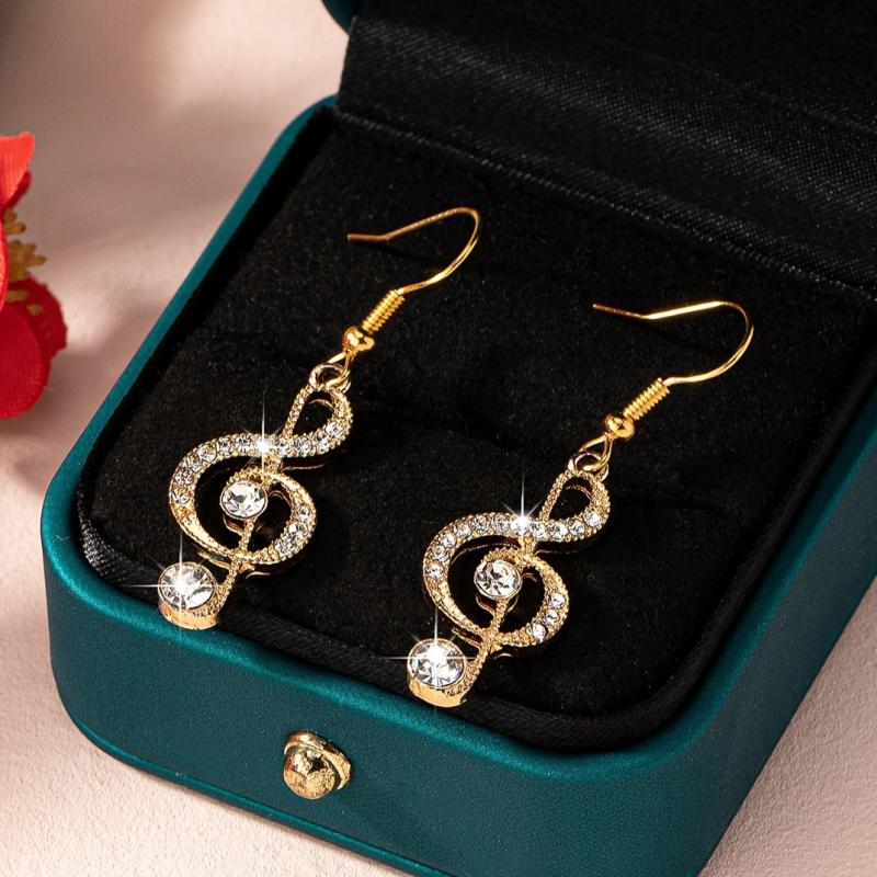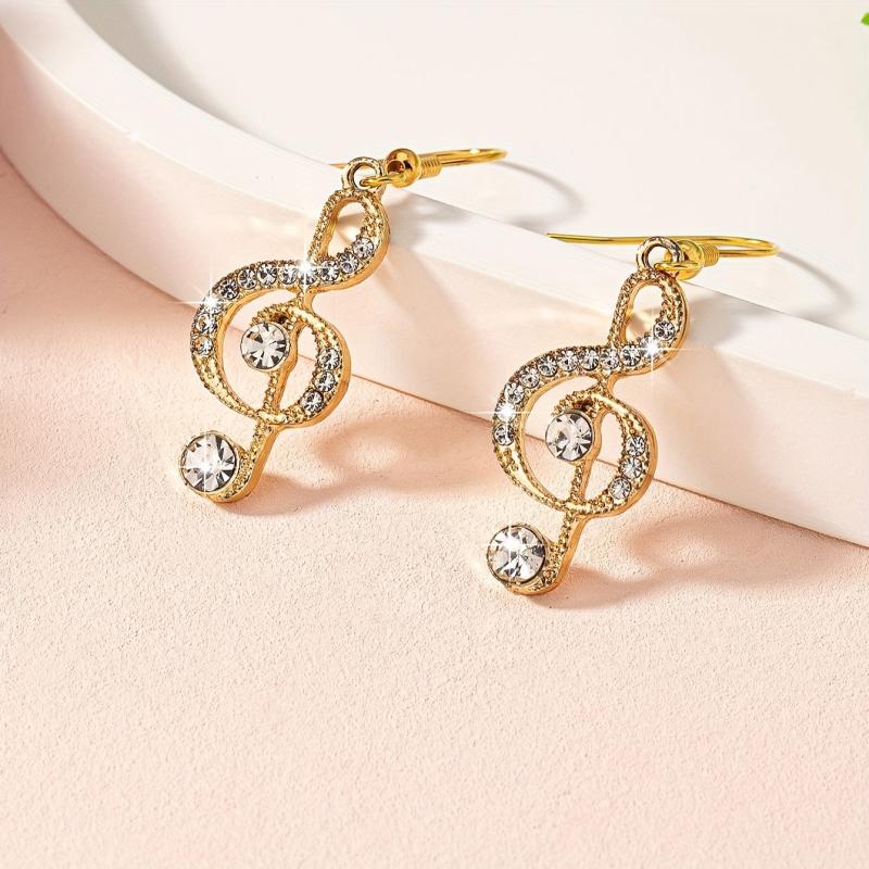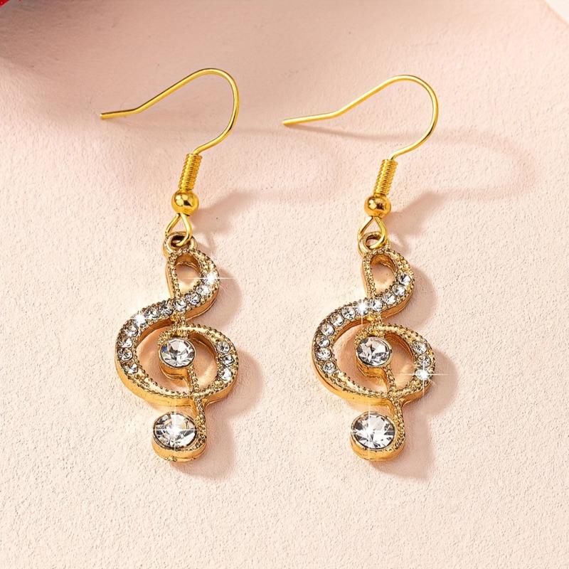 These stylish dangle earrings feature music note design with sparkling rhinestones. They are perfect for both daily wear and parties, adding a touch of elegance to any outfit.