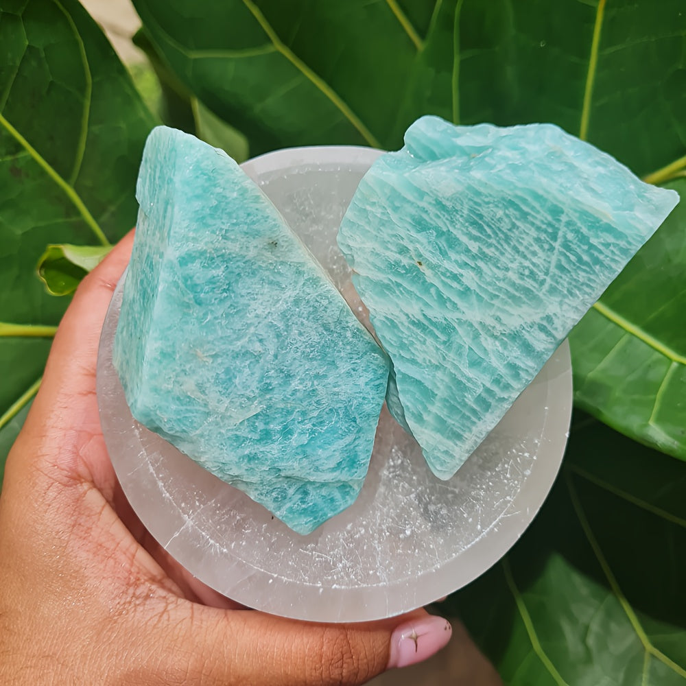 Create stunning jewelry in bohemian style with these natural Amazonite rough stones. The light unpolished faux gemstones provide a raw and organic look to your DIY projects.