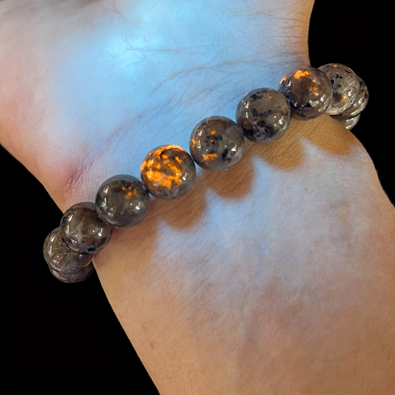 Experience the healing power of natural flame stone with this adjustable stretch beaded bracelet designed for men.