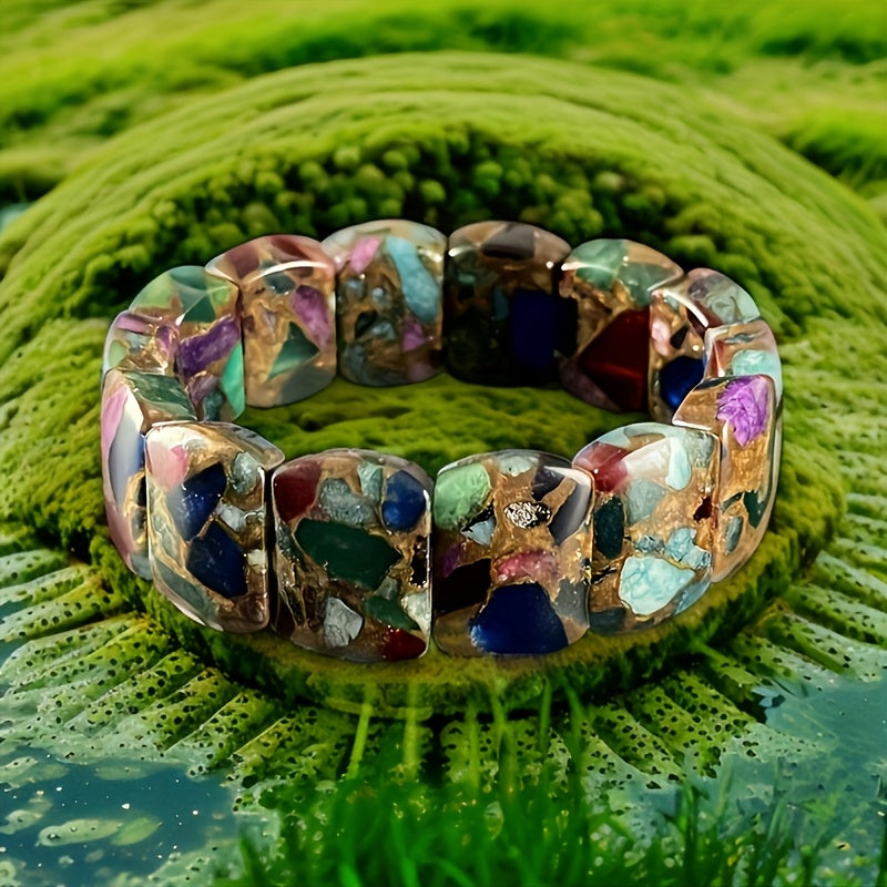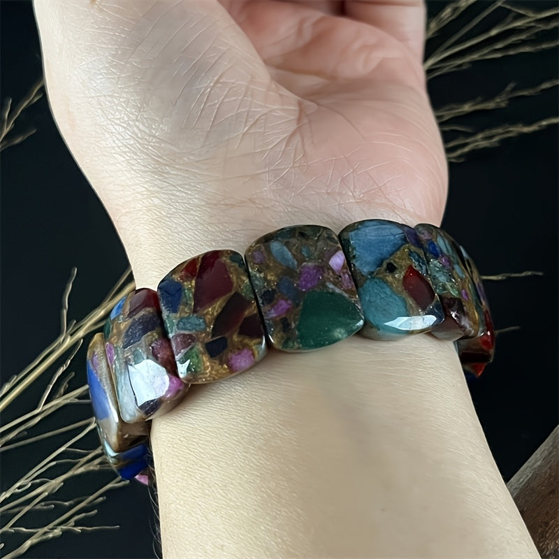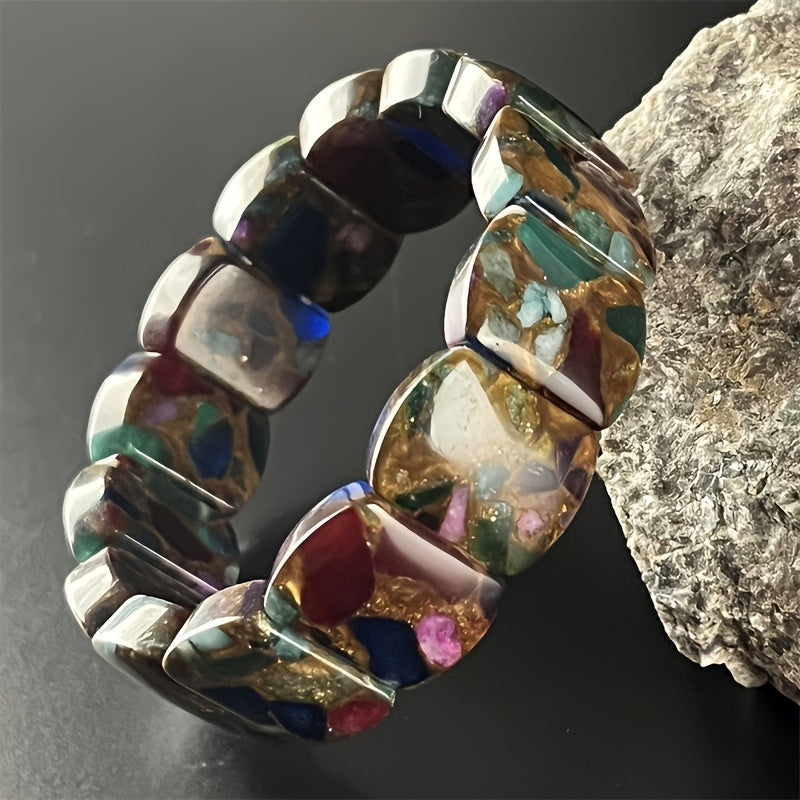 This natural stone bracelet is a stylish accessory that adds a touch of elegance to any outfit. The elastic bead design allows for a comfortable fit for both men and women.