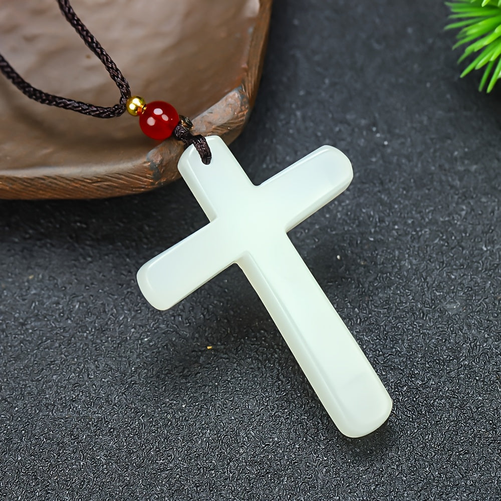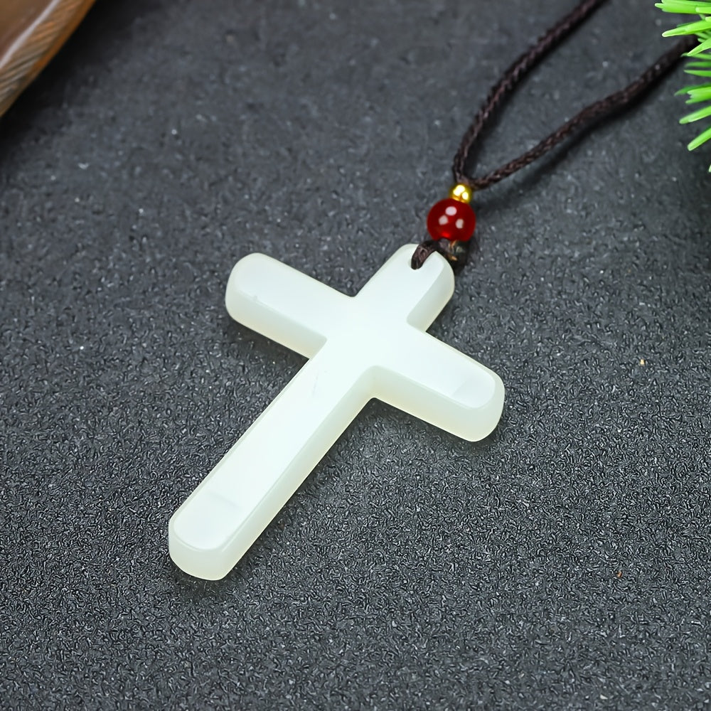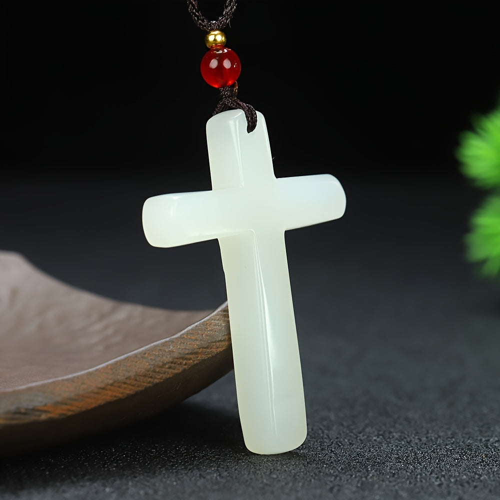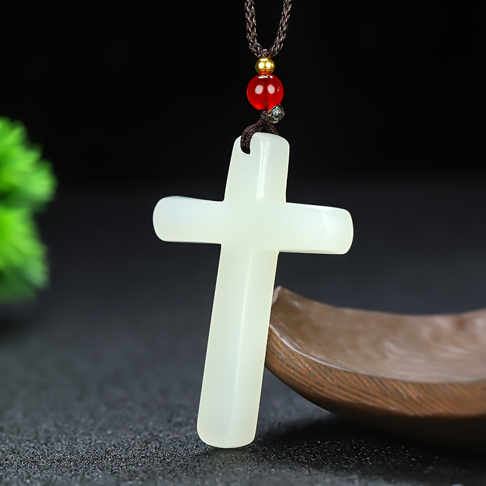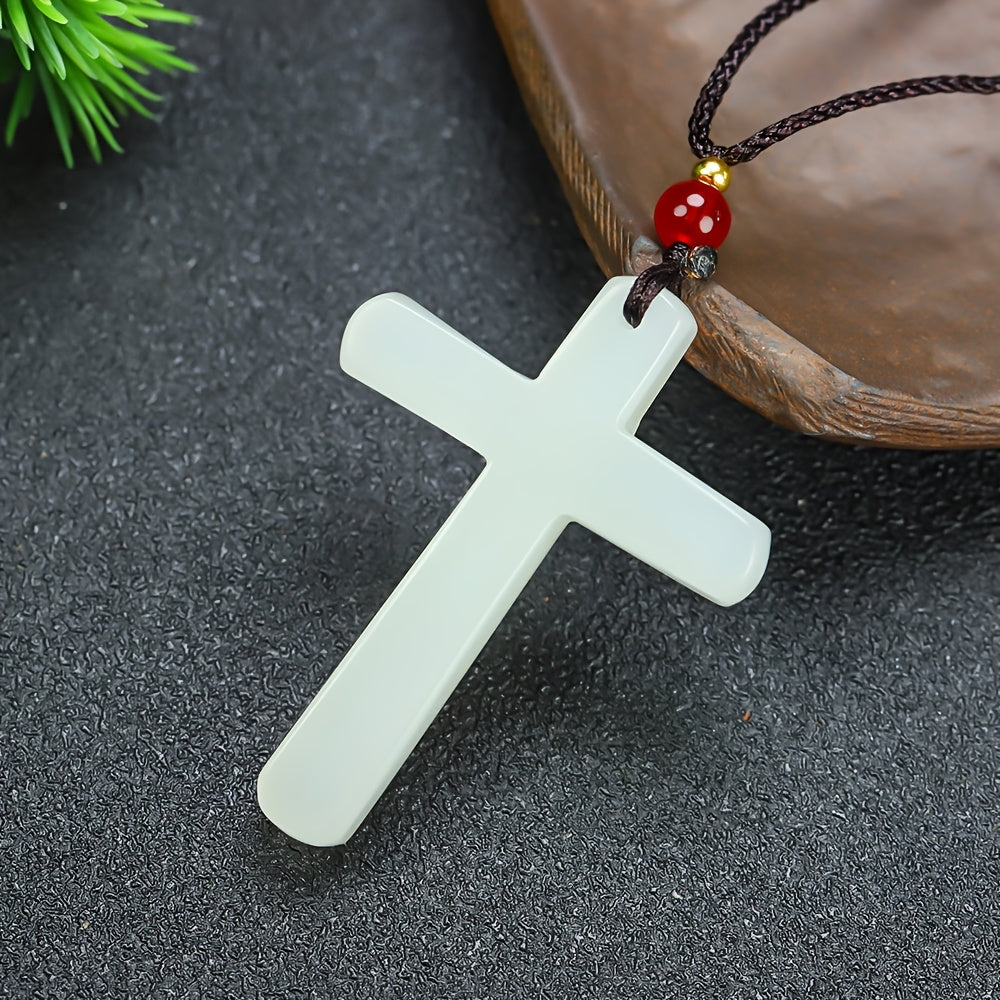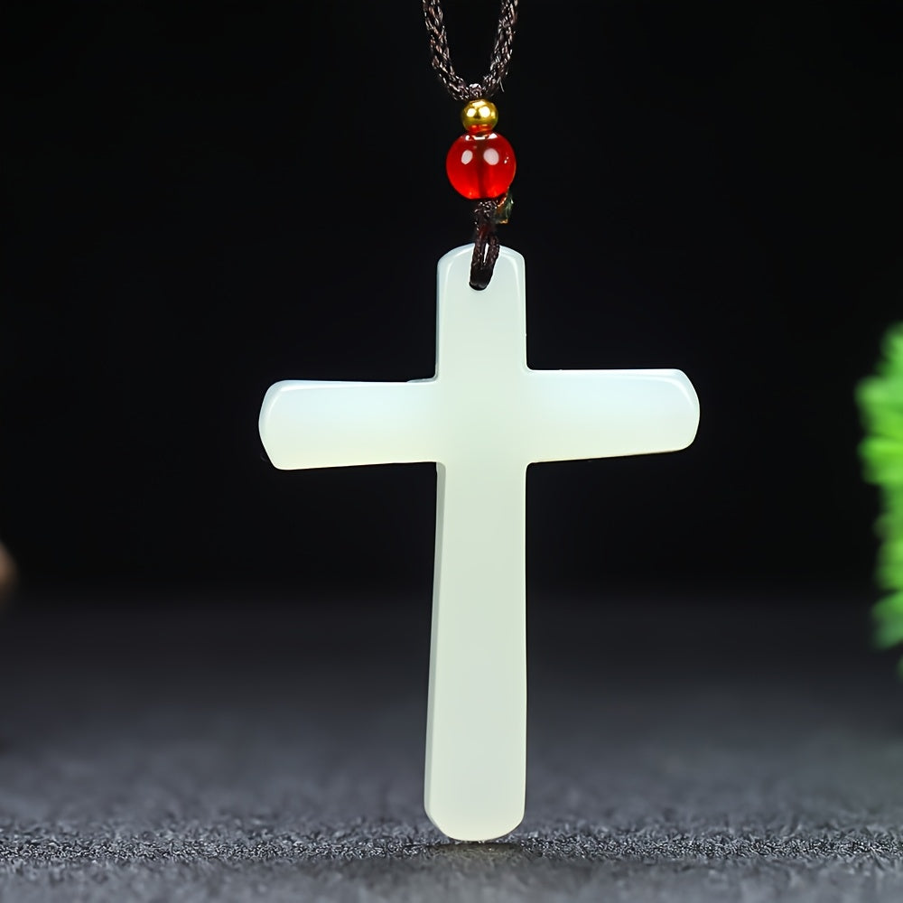 Featuring a minimalist stone cross design with a vibrant red bead accent, this pendant necklace is suitable for casual attire and makes a great holiday gift for Christmas or Easter.