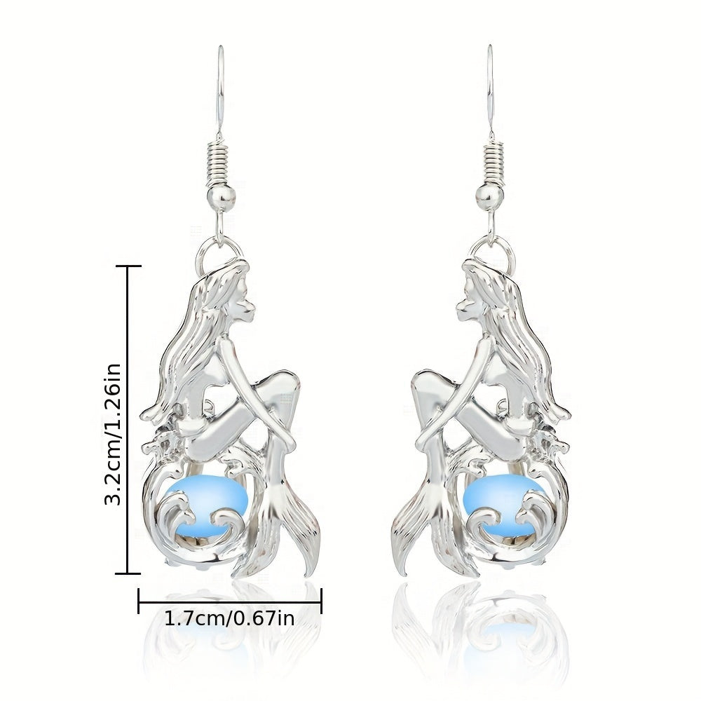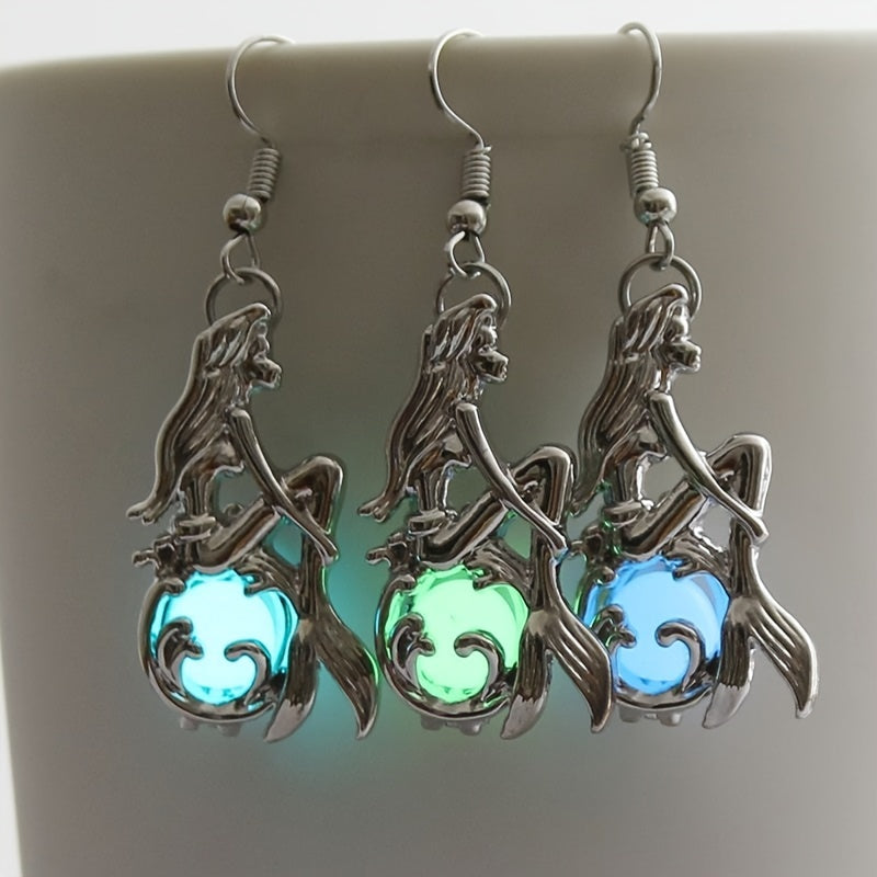 Nookxian Copper Mermaid Earrings Glow in Dark Drop Dangle Vacation Style