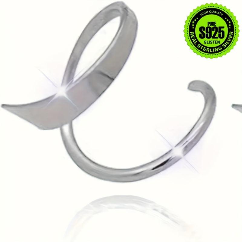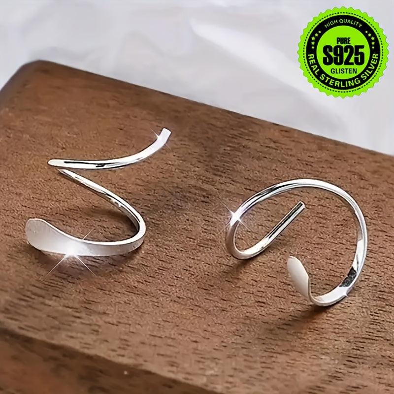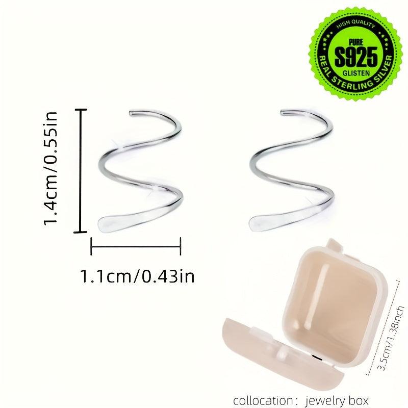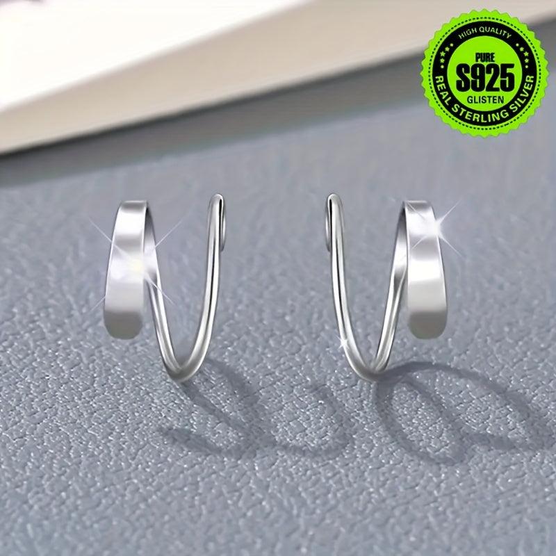 Elegant pair of earrings featuring a double spiral design and curved through ear rings. Made of pure silvery material and hypoallergenic. Perfect for everyday wear or special occasions.