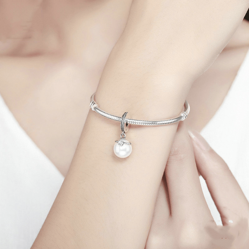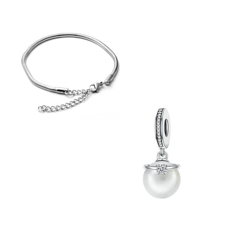 Enhance your jewelry creations with this elegant set featuring rhinestone-decorated pearl pendants and silvery alloy bangles. Perfect for crafting unique bracelets.