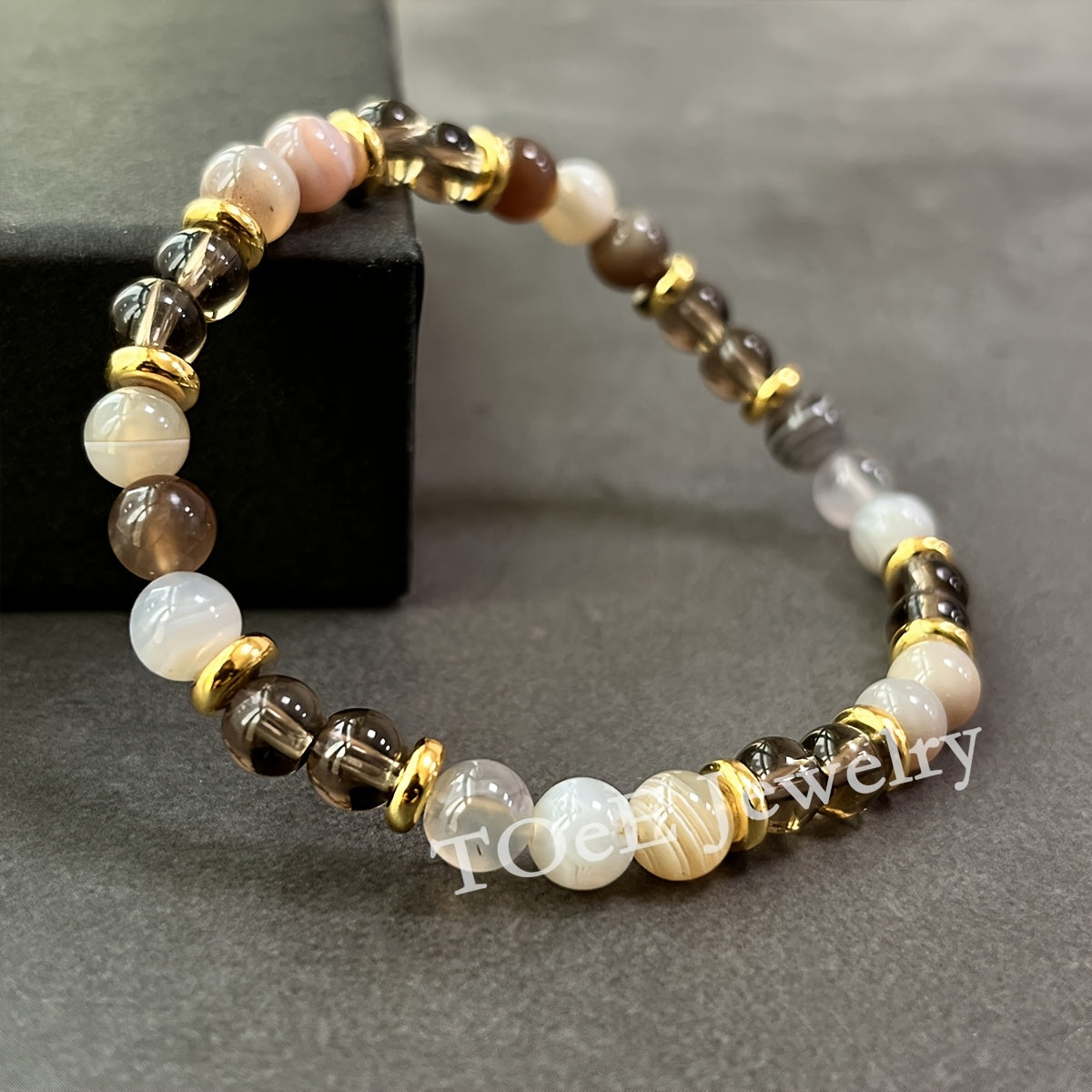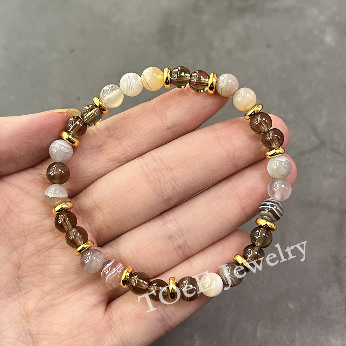 Find your inner strength and emotional balance with this bohemian unisex bracelet featuring natural Persian Gulf Agate beads. The bracelet is designed for grounding, protection, and promoting inner peace.