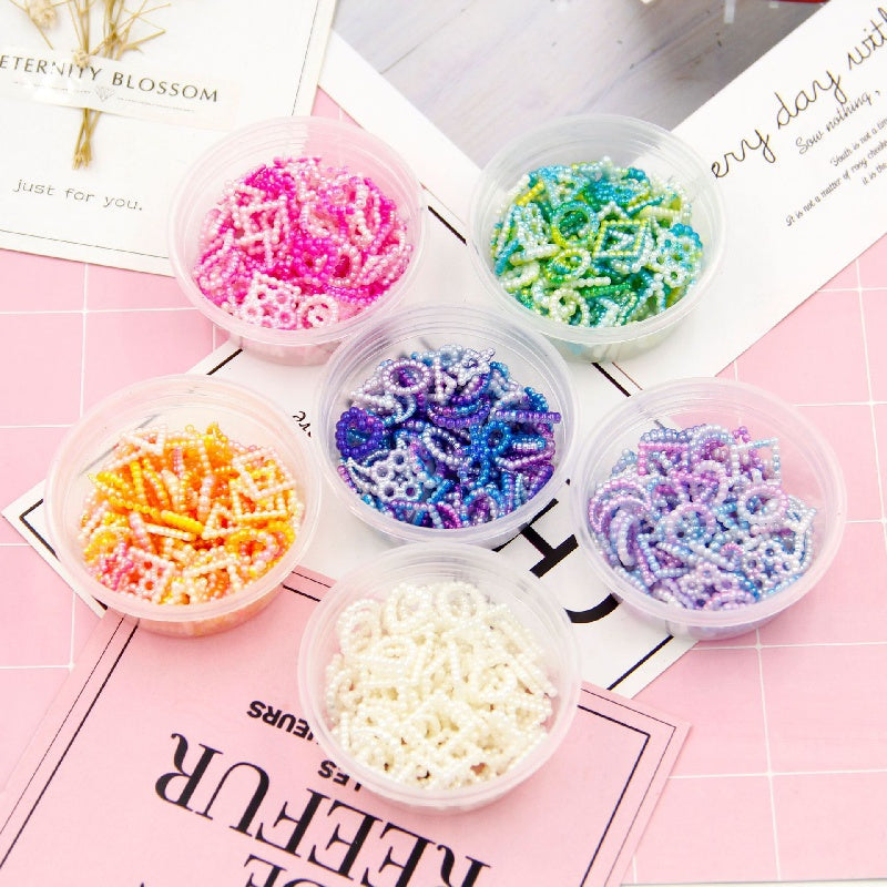 Create stunning jewelry pieces with this set of plastic bow heart round pearl beaded charms. Perfect for art and craft projects.
