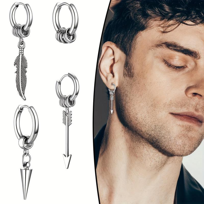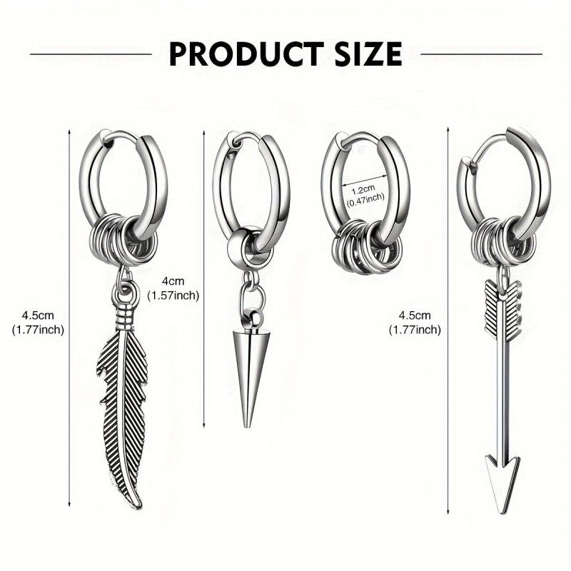 These 4pcs hoop earrings feature a punk feather arrow design. Made of high-quality stainless steel, they are perfect for daily wear or parties. A great gift for friends!