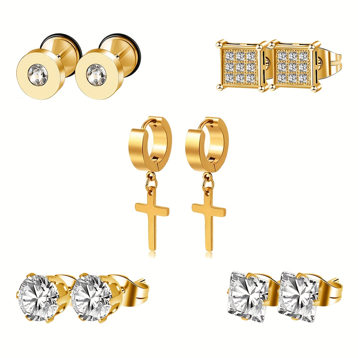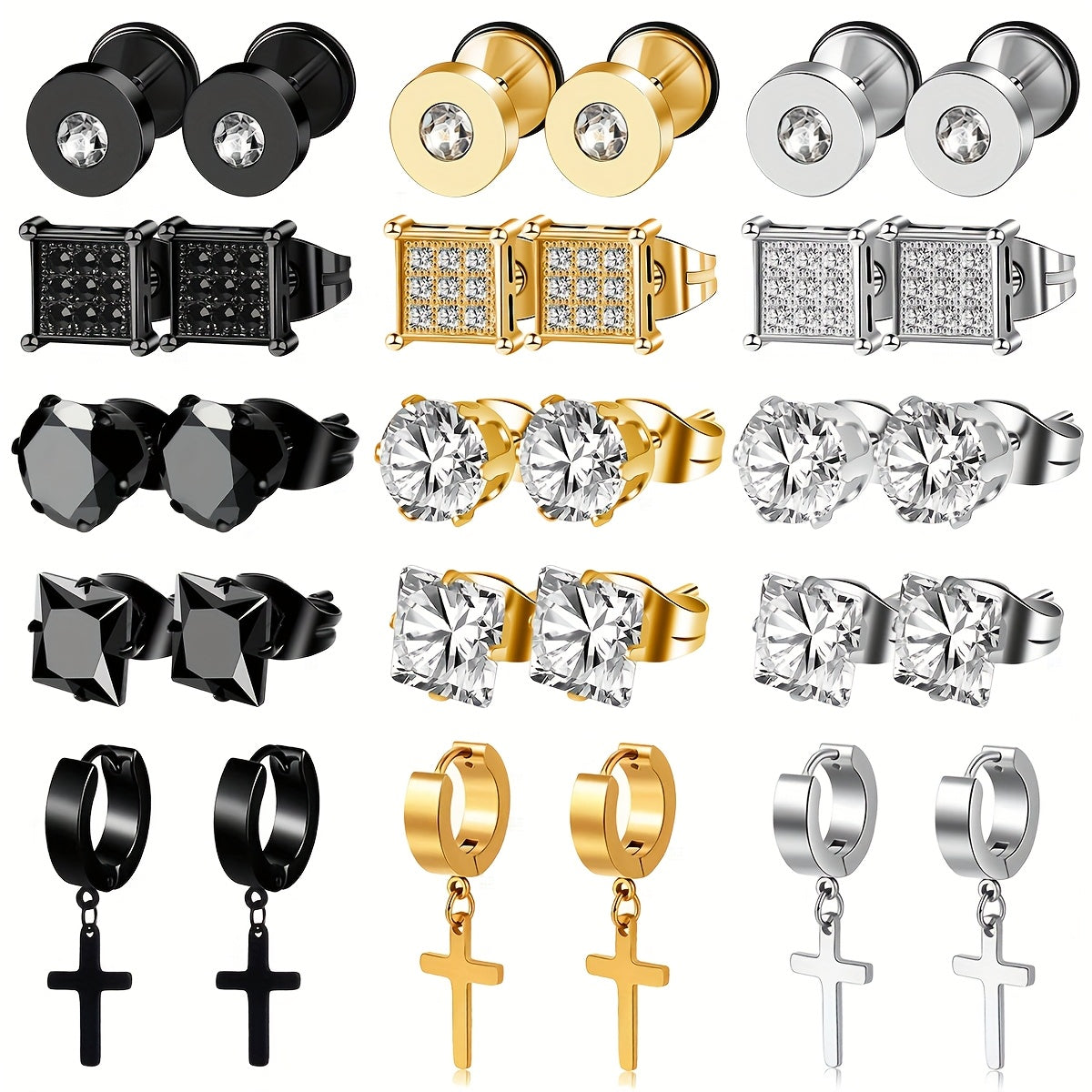 • 10pcs of Punk Hip Hop Stainless Steel Zirconia Earrings