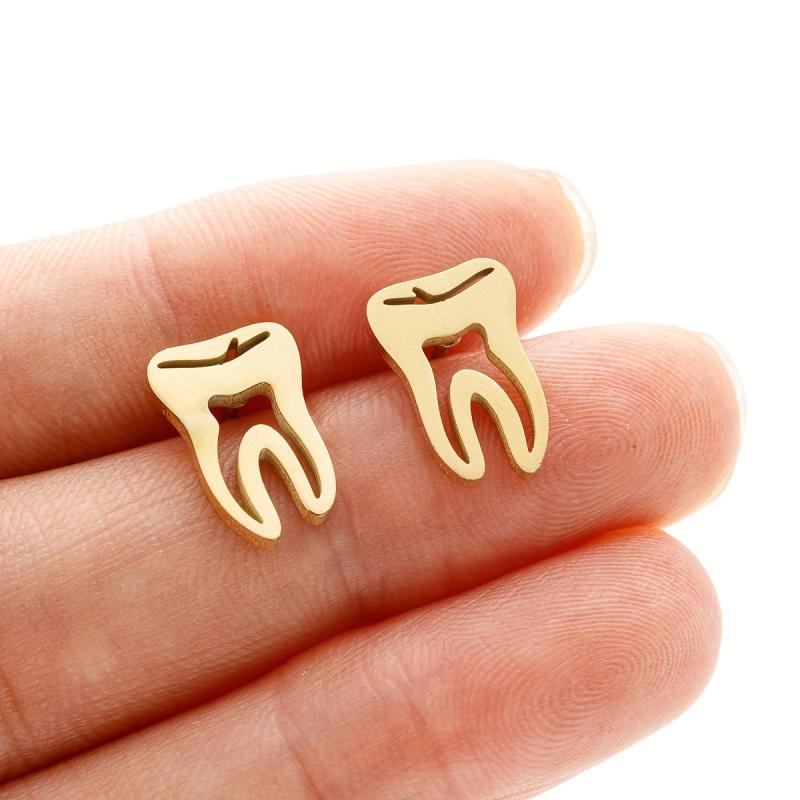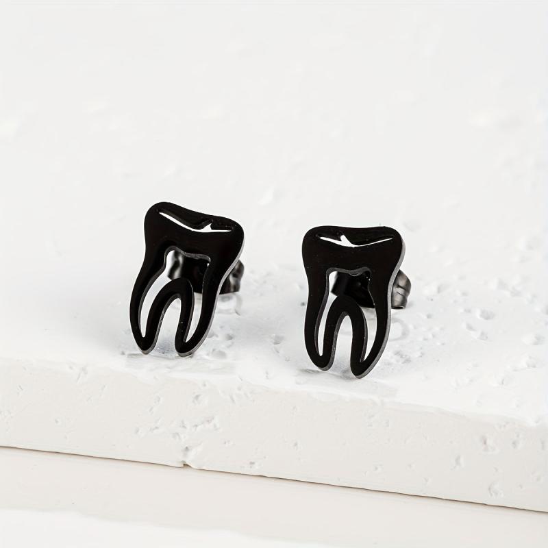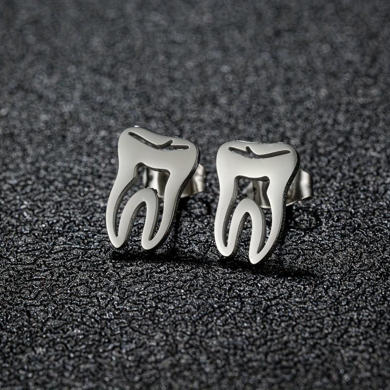 Add a punk edge to your style with these stainless steel tooth stud earrings designed for men. These earrings are a bold fashion statement that will stand out.