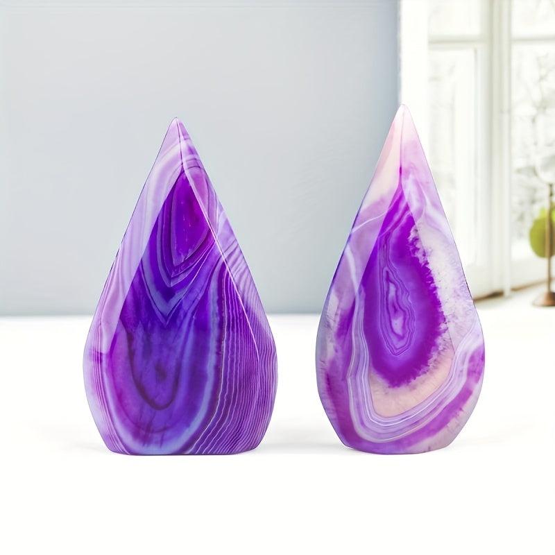 Add a touch of elegance to your home decor with this stunning Purple Agate Ornament. Each piece features unique patterns and vibrant colors, making it a perfect holiday gift or collectible item. Handcrafted from natural stone, this agate ornament is a beautiful addition to any room.