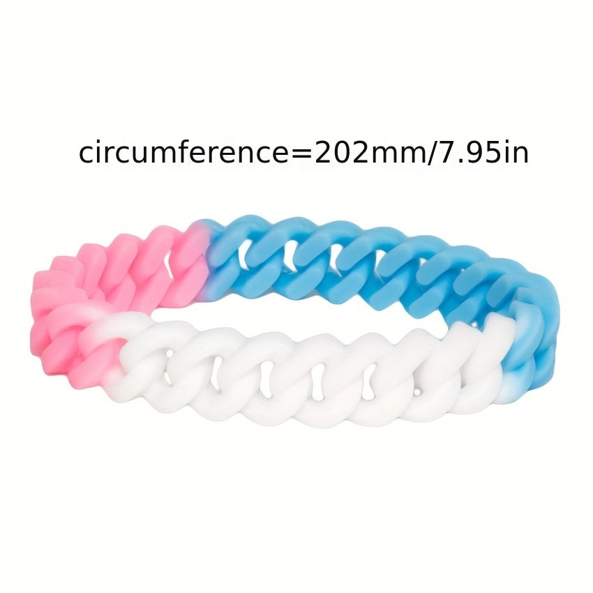 Add a pop of color to your outfit with this rainbow silicone wristband. Perfect for parties or casual wear, it's a fun accessory that will surely catch attention.