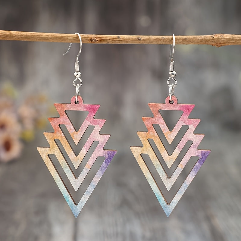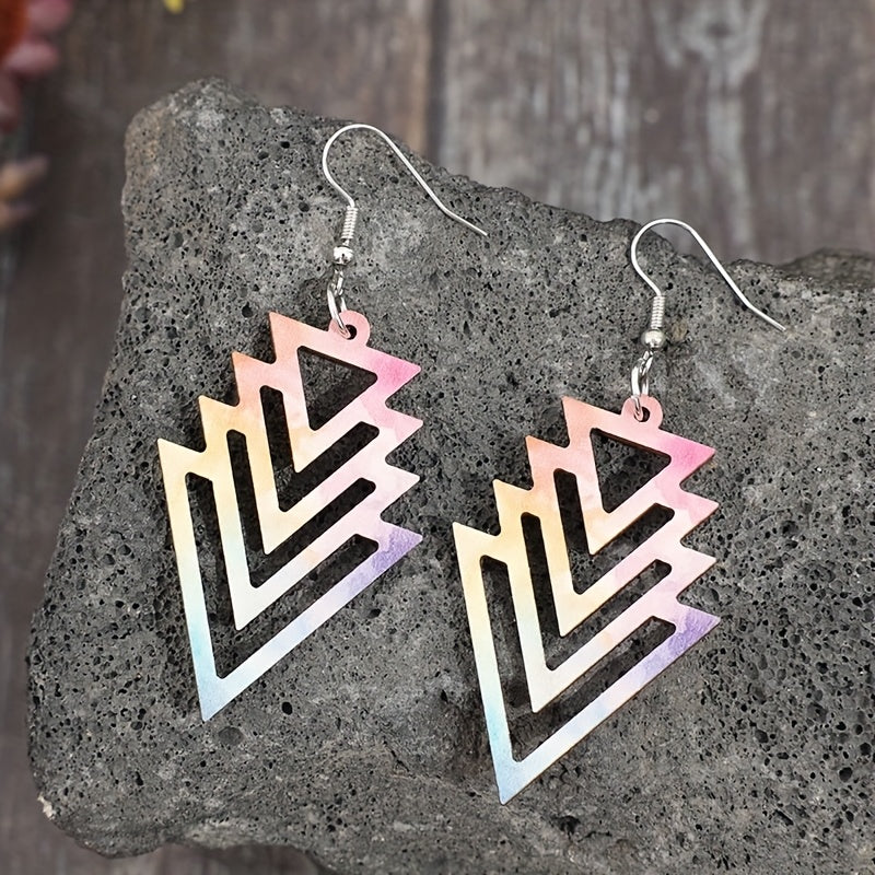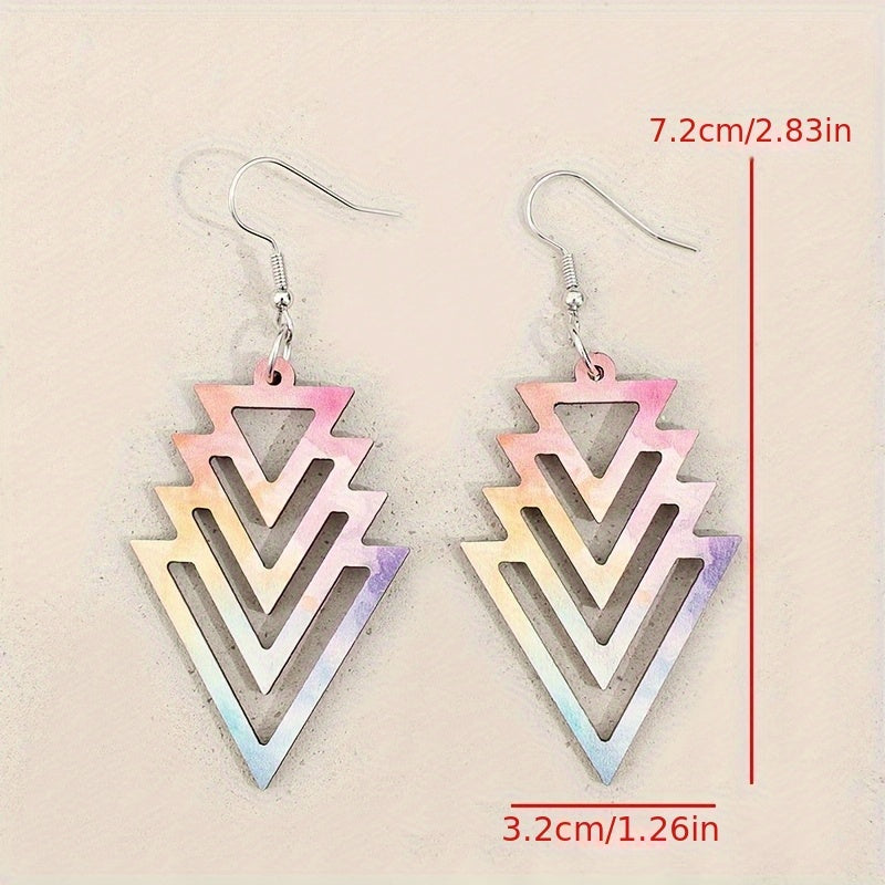 Add a touch of retro punk style to your look with these lightweight hollow triangle arrow earrings made from recycled wood. The colorful gradient finish adds a pop of fun to your everyday jewelry collection.