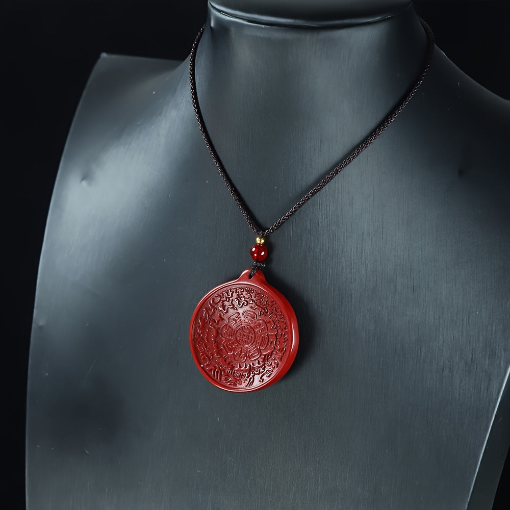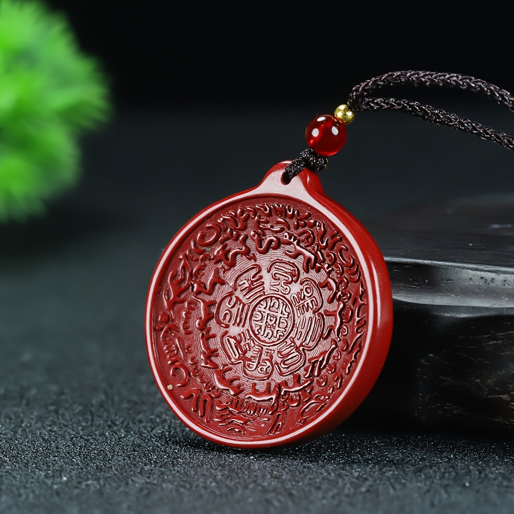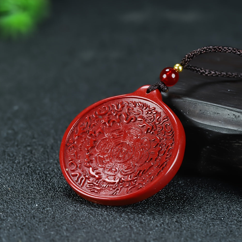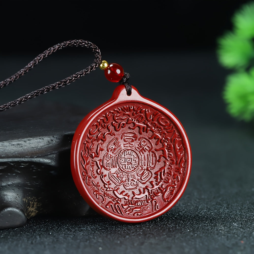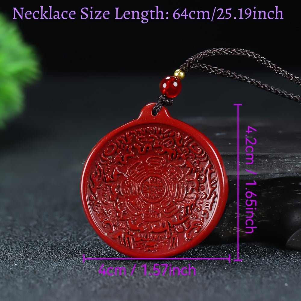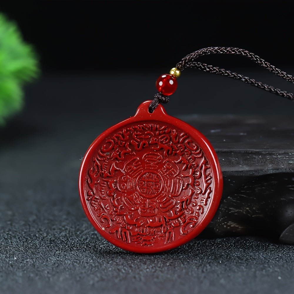 Red Chinese Ink Eight Trigrams Pendant Necklace Handcrafted