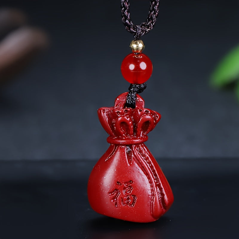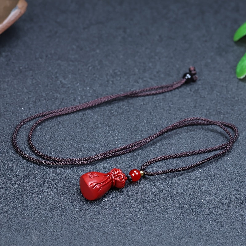 This red cinnabar pendant necklace is a symbol of wealth and good luck. It features a money bag design, perfect for both men and women.
