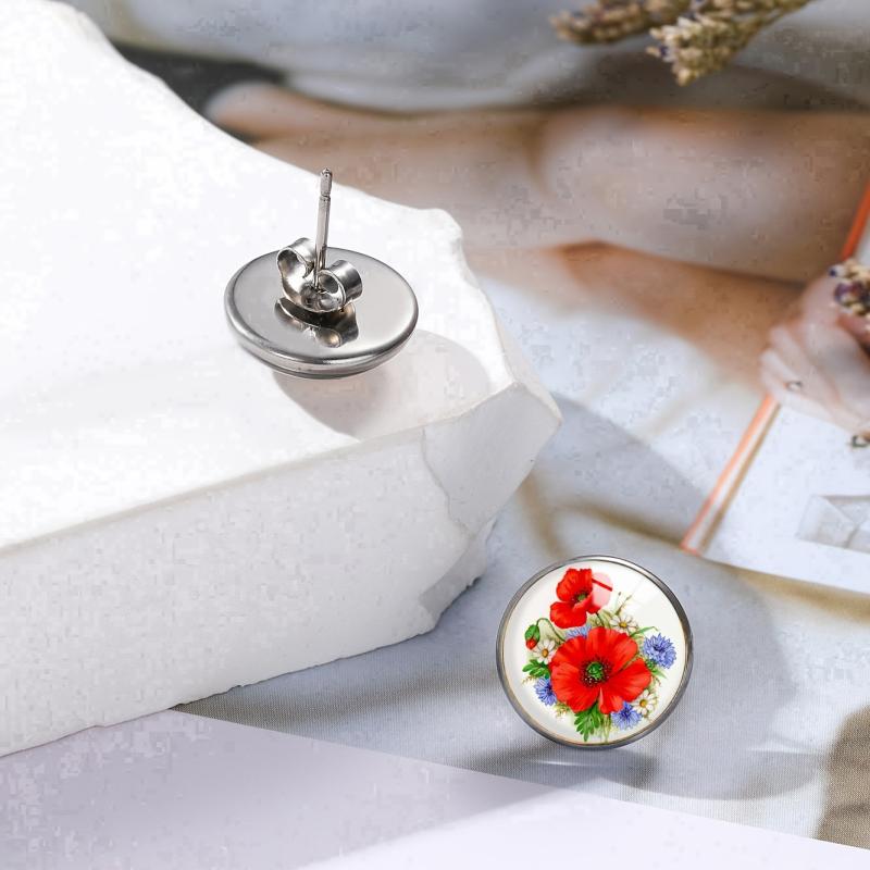 Enhance your style with these sexy stainless steel stud earrings featuring a red flower design. These earrings are hypoallergenic and suitable for men and women.