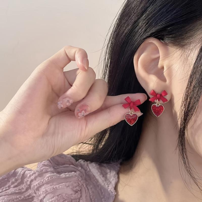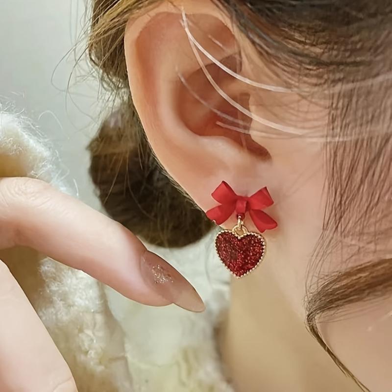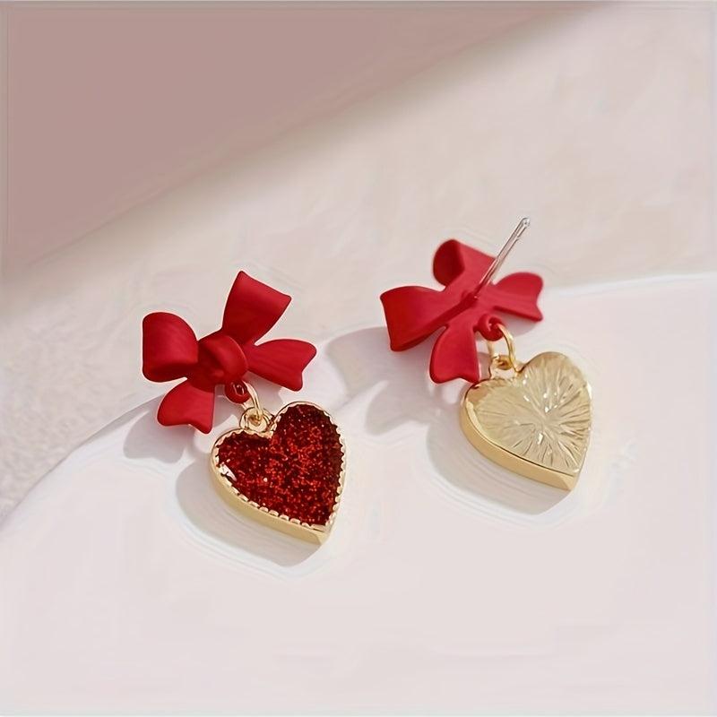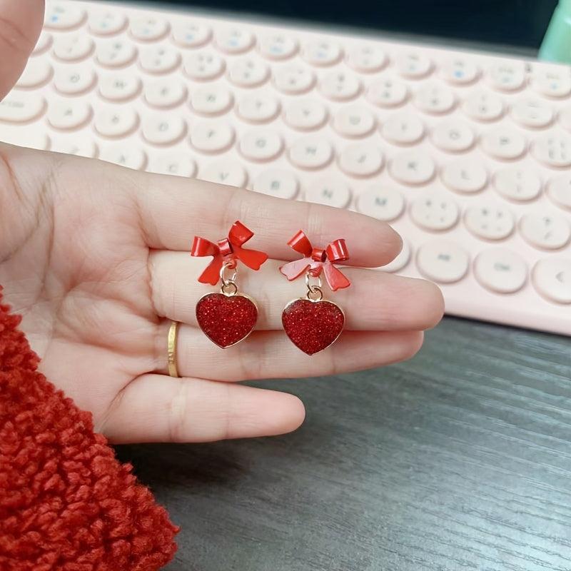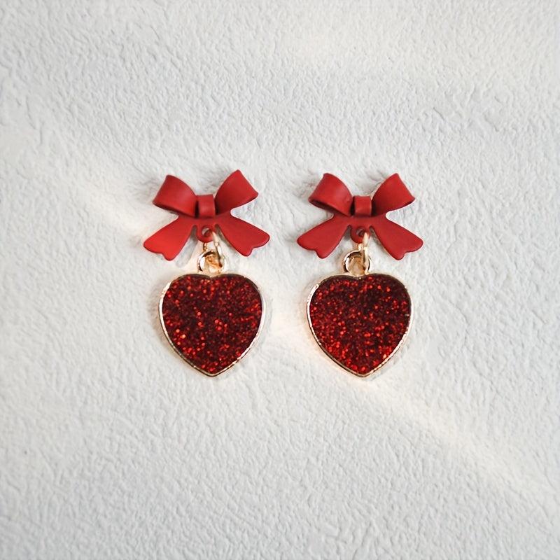 Complete your sweet and charming look with these vintage-inspired tassel drop earrings featuring red heart and bow details. Accented with sequins for added sparkle.