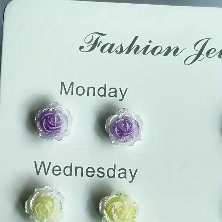 • 14pcs resin rose flower earrings in colorful pastel shades