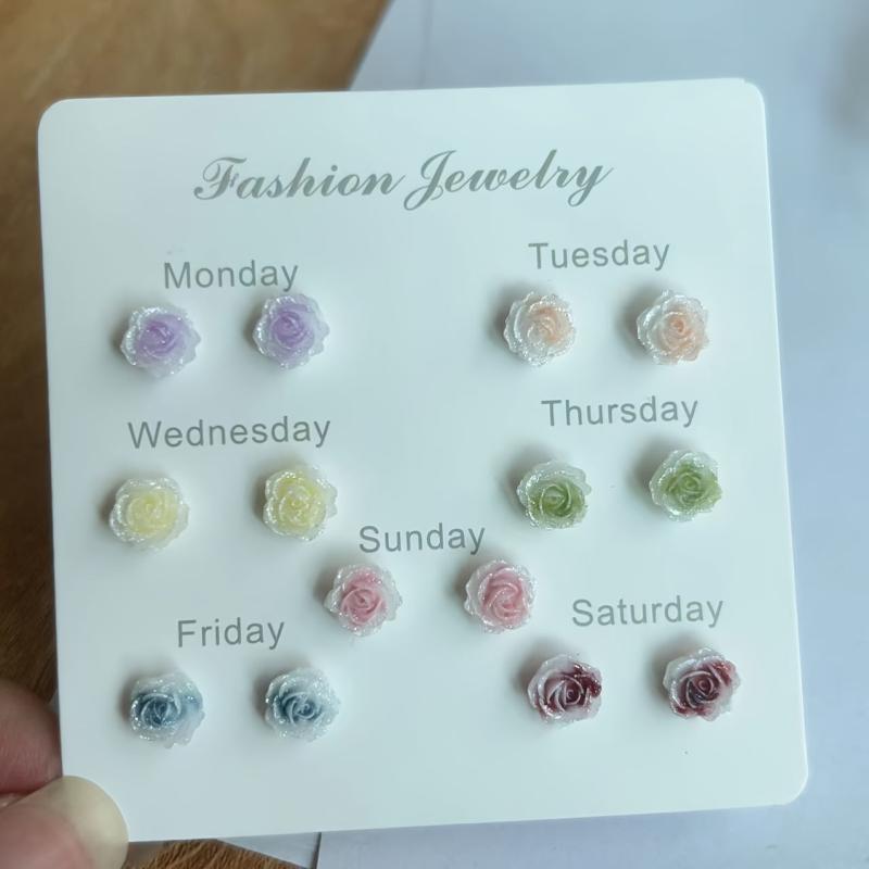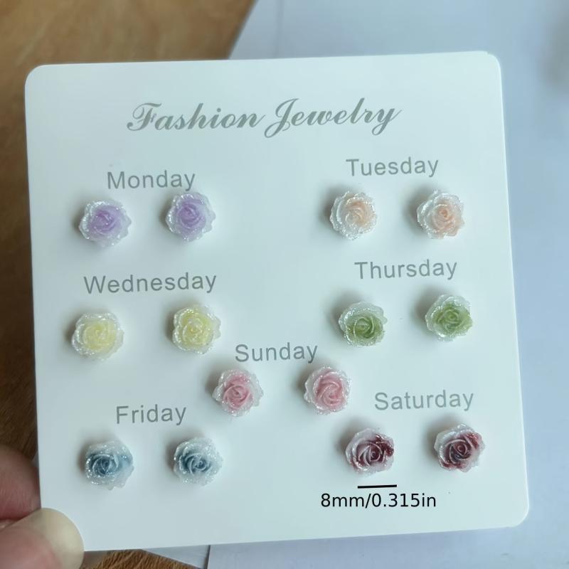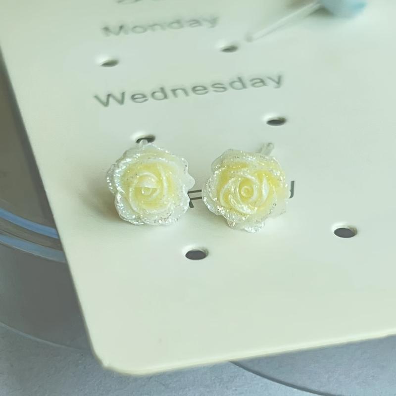 Resin Rose Flower Earrings Pastel Colorful Stud Earrings for Women