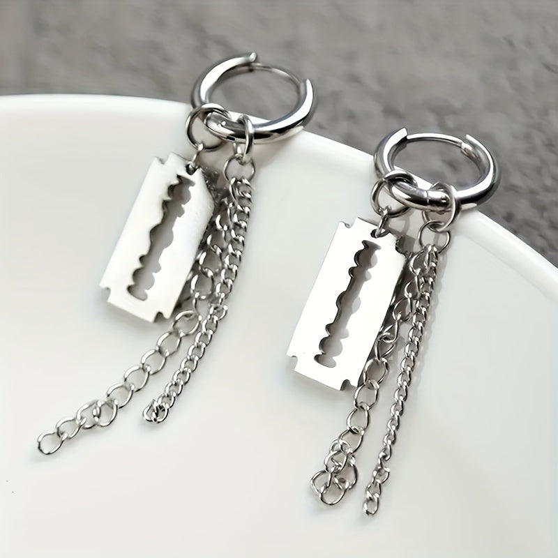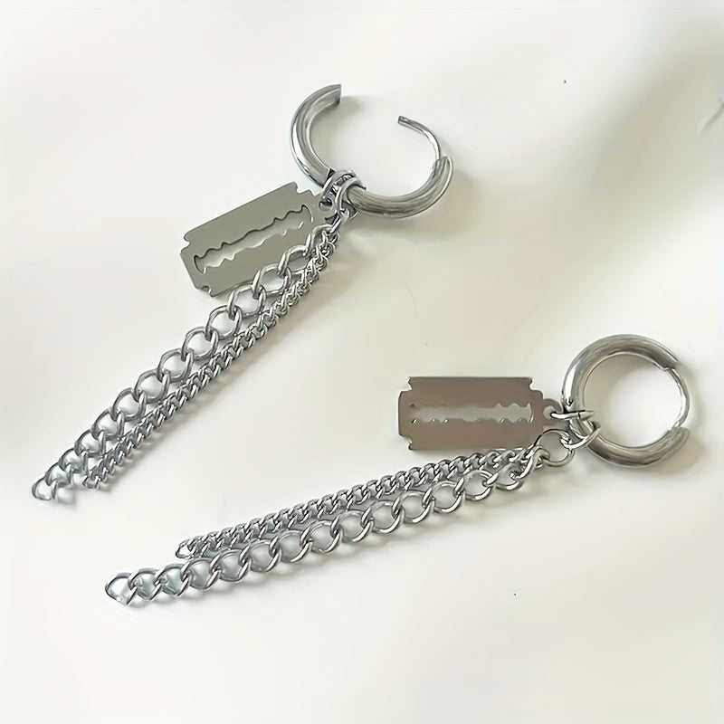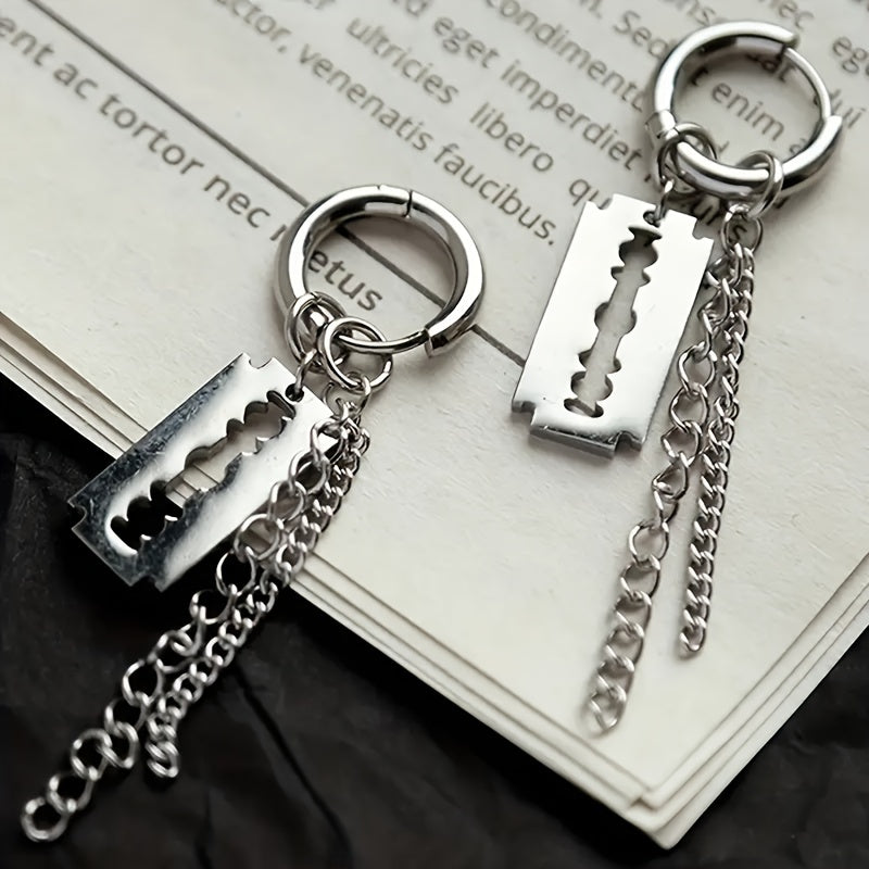 Make a bold statement with these retro blade earrings. Featuring a punk hip-hop golden ear cuff and a dark style, these earrings are perfect for men who want to stand out.