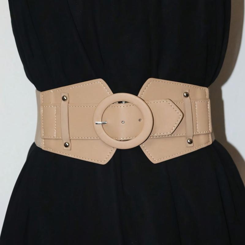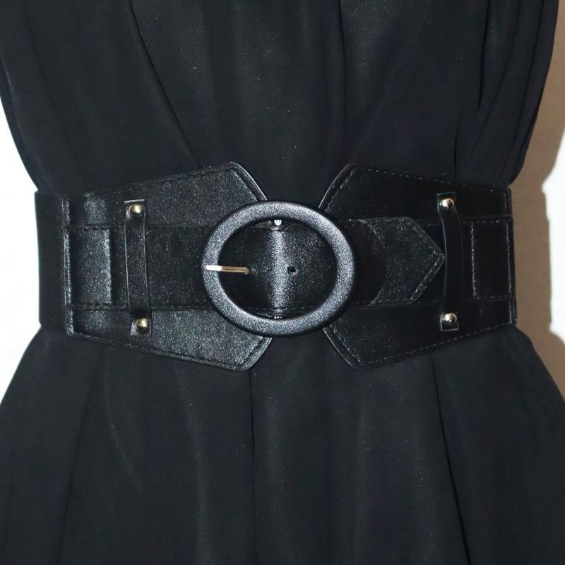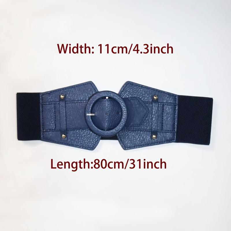 Add a touch of vintage charm to your outfit with this versatile wide belt featuring a stylish needle buckle decoration. Perfect for pairing with skirts or dresses.
