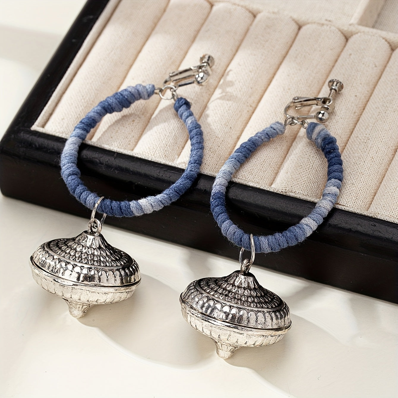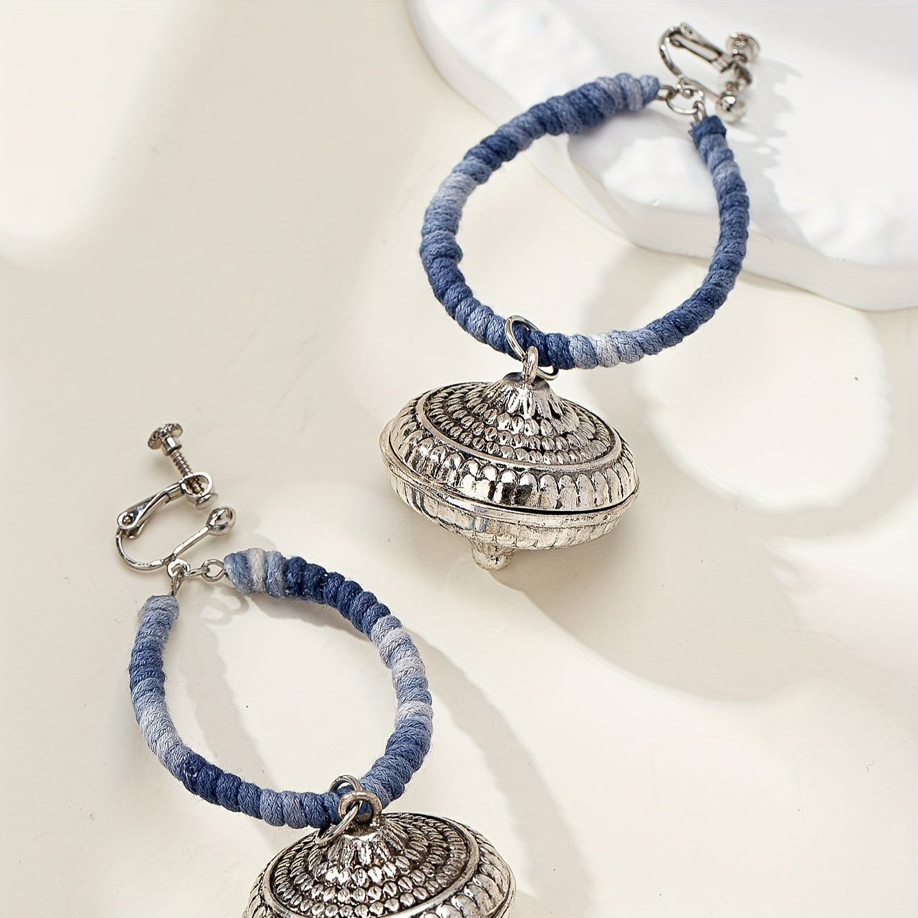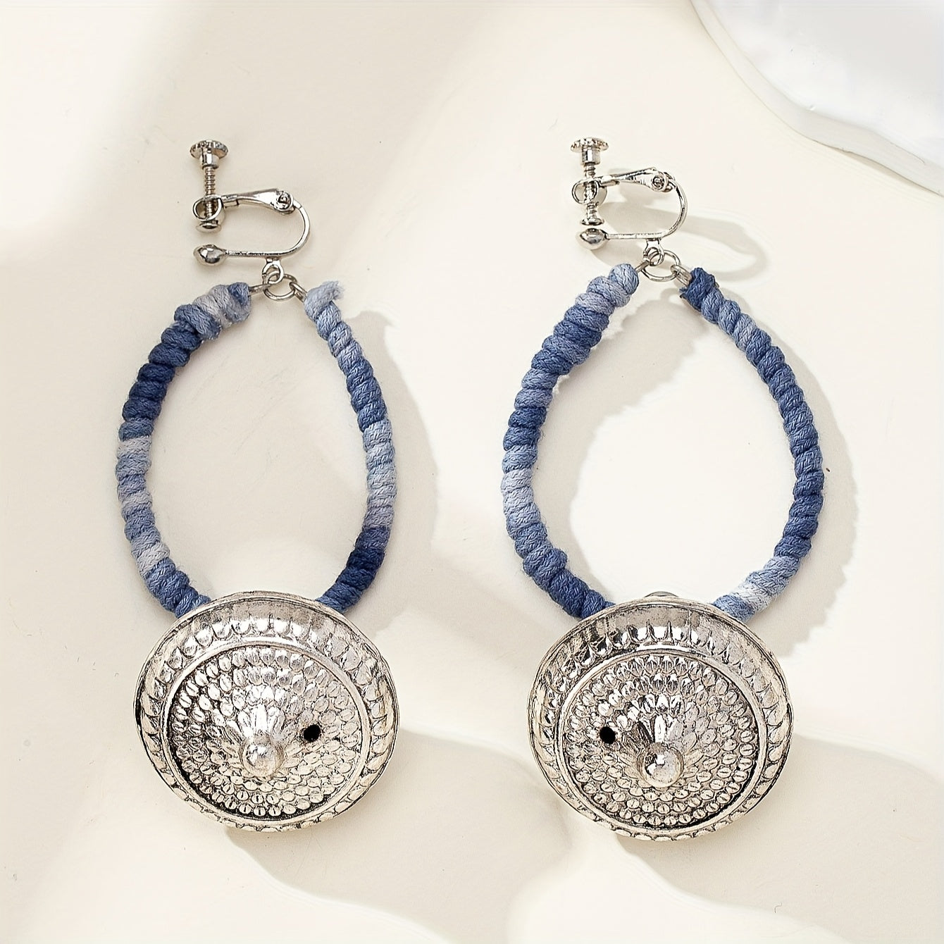 These fashionable retro ethnic style Indian exotic earrings are perfect for adding a touch of bohemian flair to any outfit. They feature a clip-on design for easy wear.