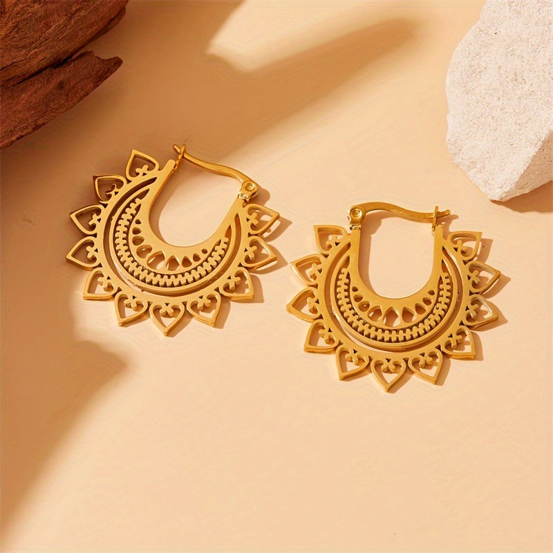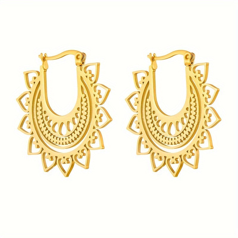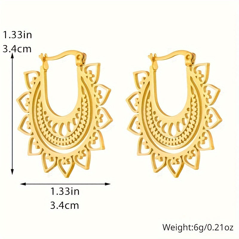 Elevate your style with these European and American inspired earrings featuring a minimalist retro design. The earrings combine hollow hooks, floral hearts, and geometric shapes for a trendy look.