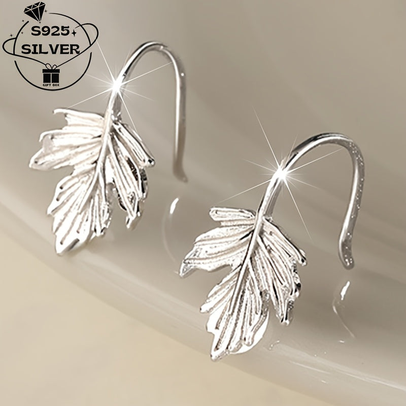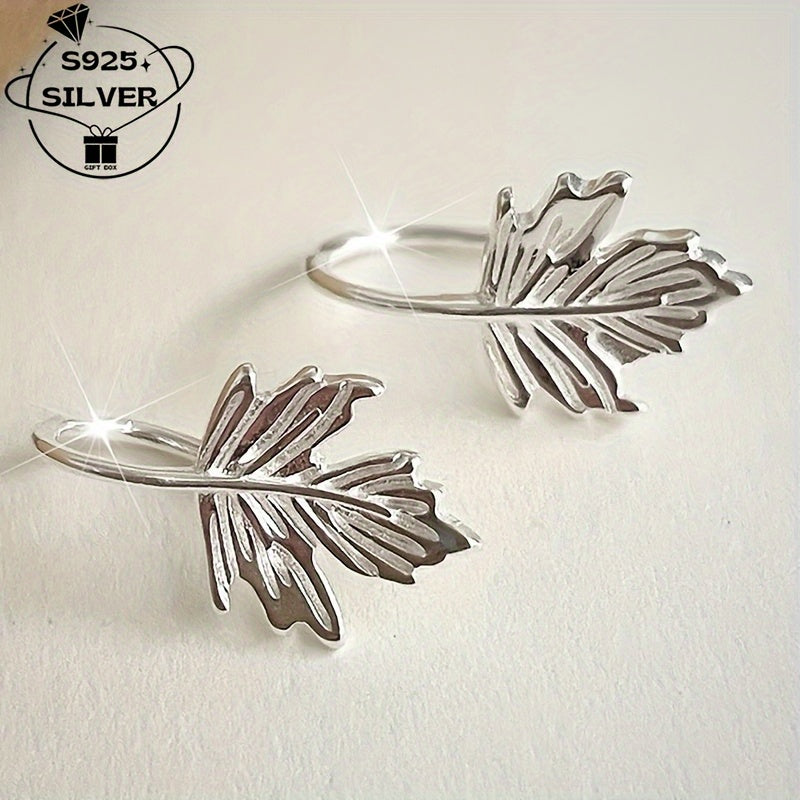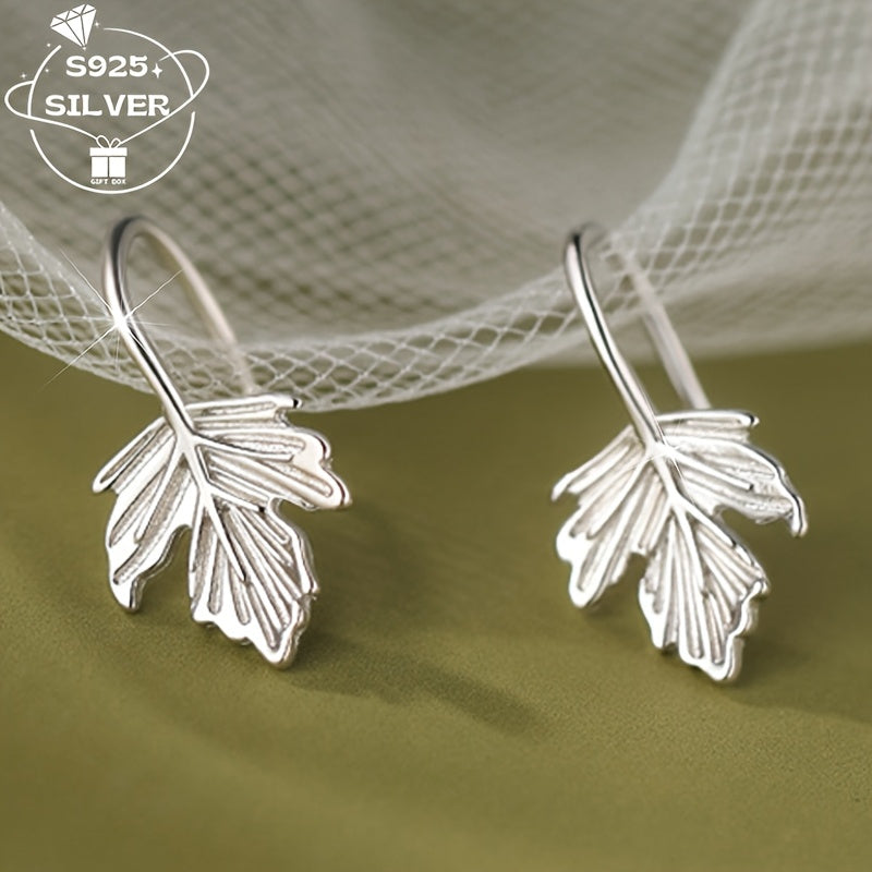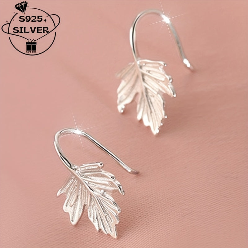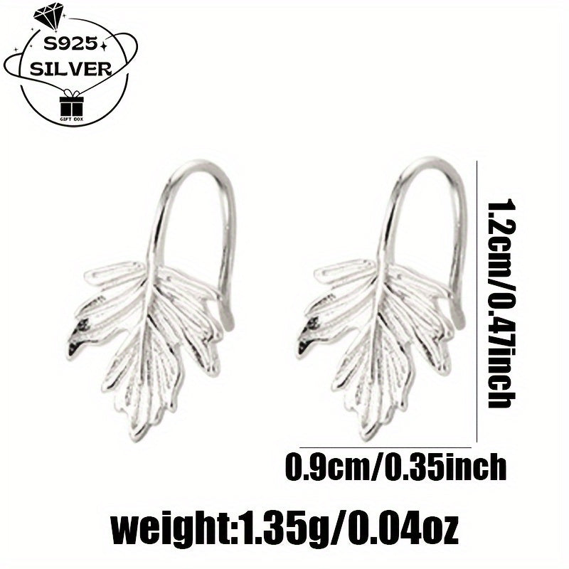 Retro Maple Leaves Ear Hook 925 Silver Lightweight Low Sensitivity