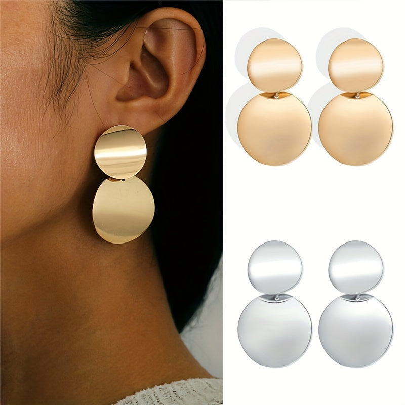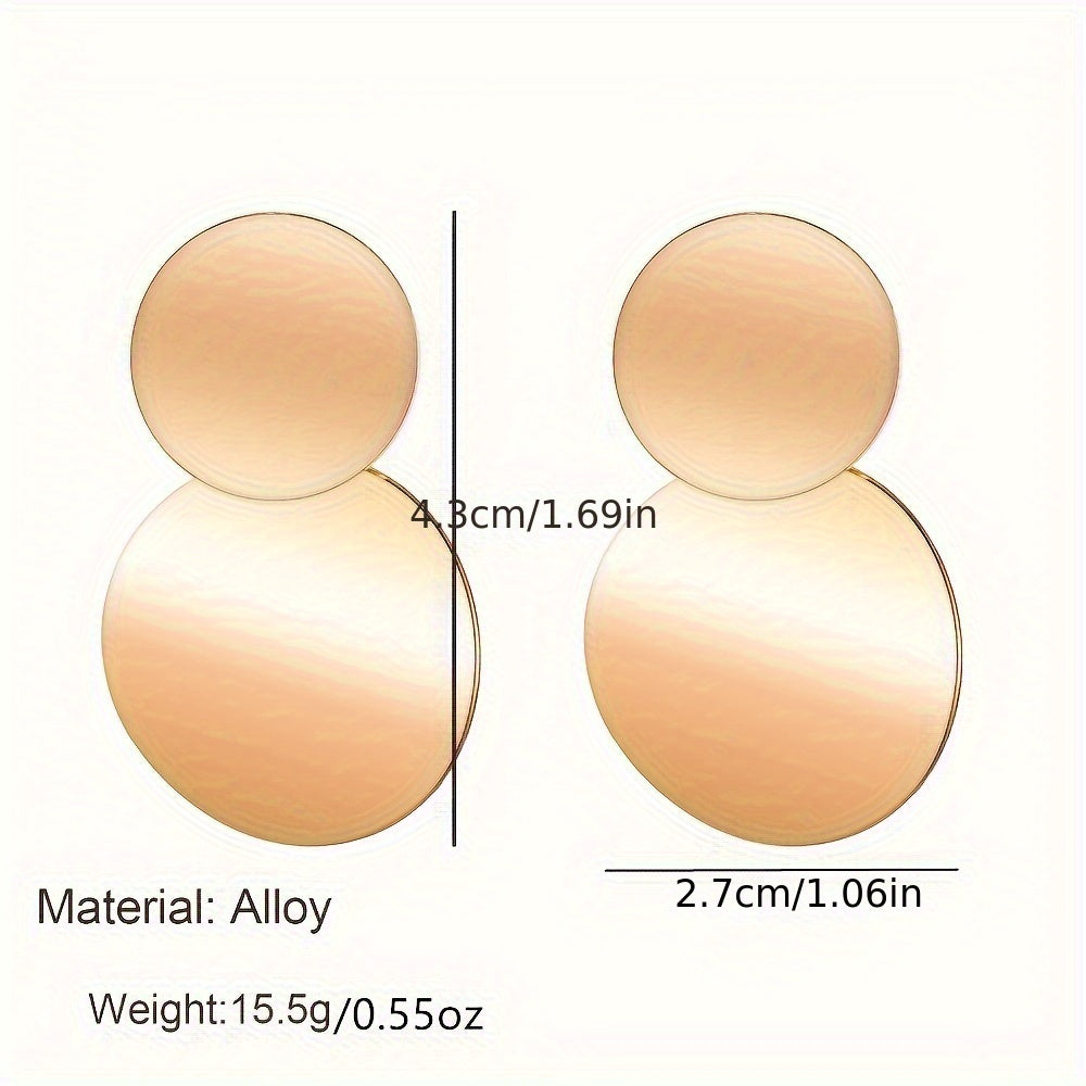 Add a touch of European and American retro style with these elegant golden element earrings. The geometric round discs offer a minimalist look that is easy to pair with any outfit. A perfect gift for women.