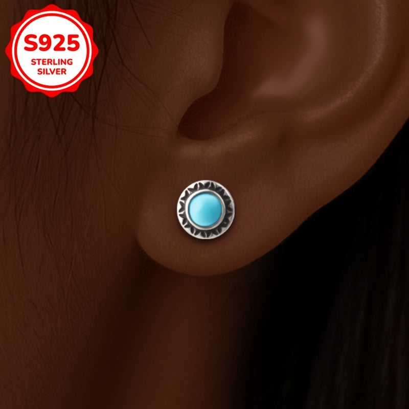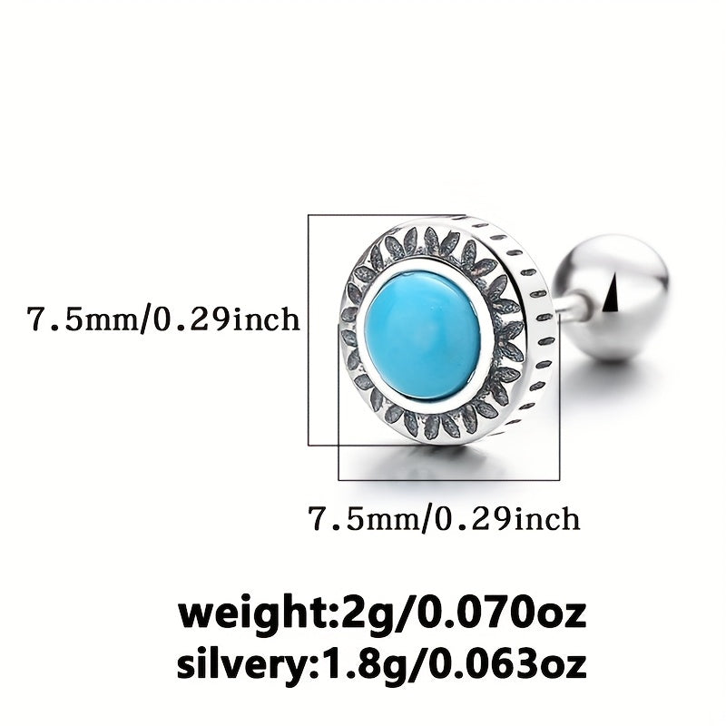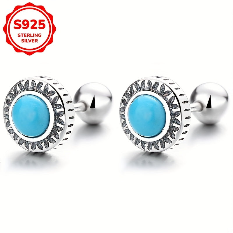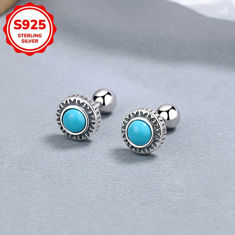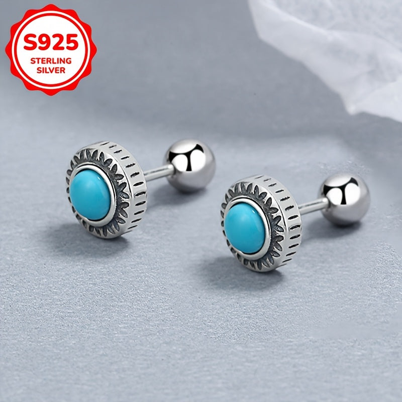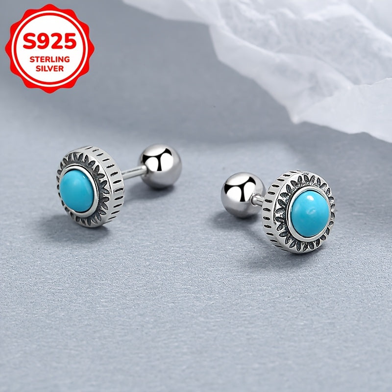 Add a touch of retro charm with these unique stud earrings featuring inlaid synthetic turquoise. Made from 925Silvery, these earrings are perfect for daily wear.