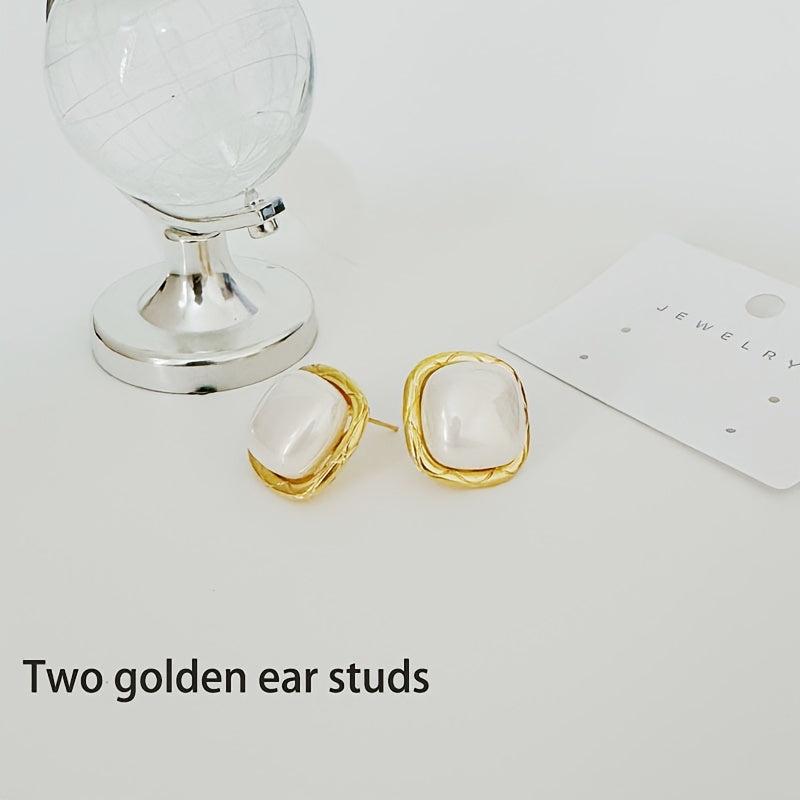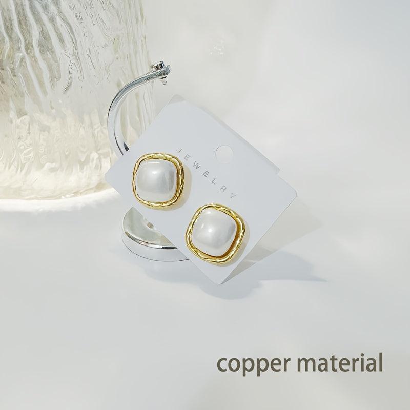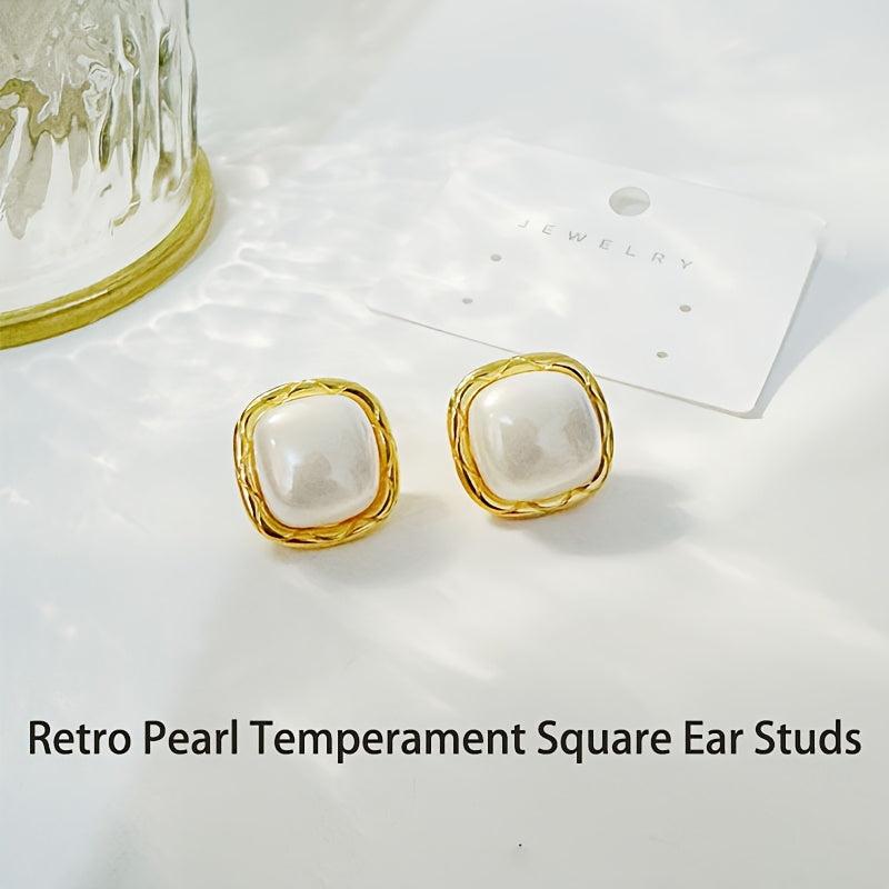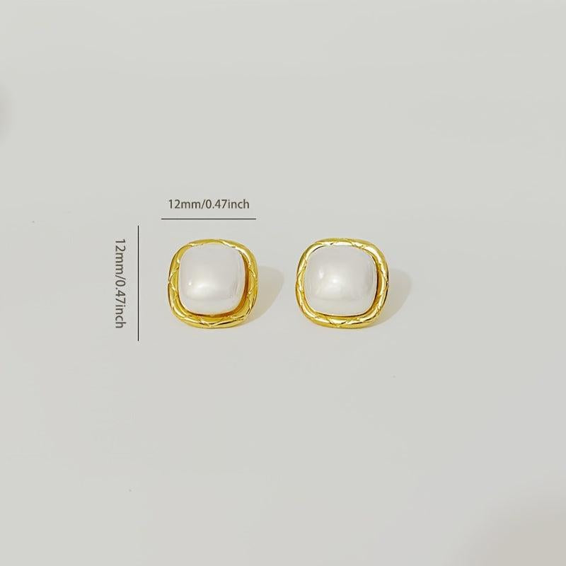 Add a touch of retro elegance with these square earrings featuring pearls. These earrings are plated with 24K gold and have 925 sterling silver posts, making them perfect for daily wear or as a gift for any occasion. They are versatile and can be worn in all seasons.